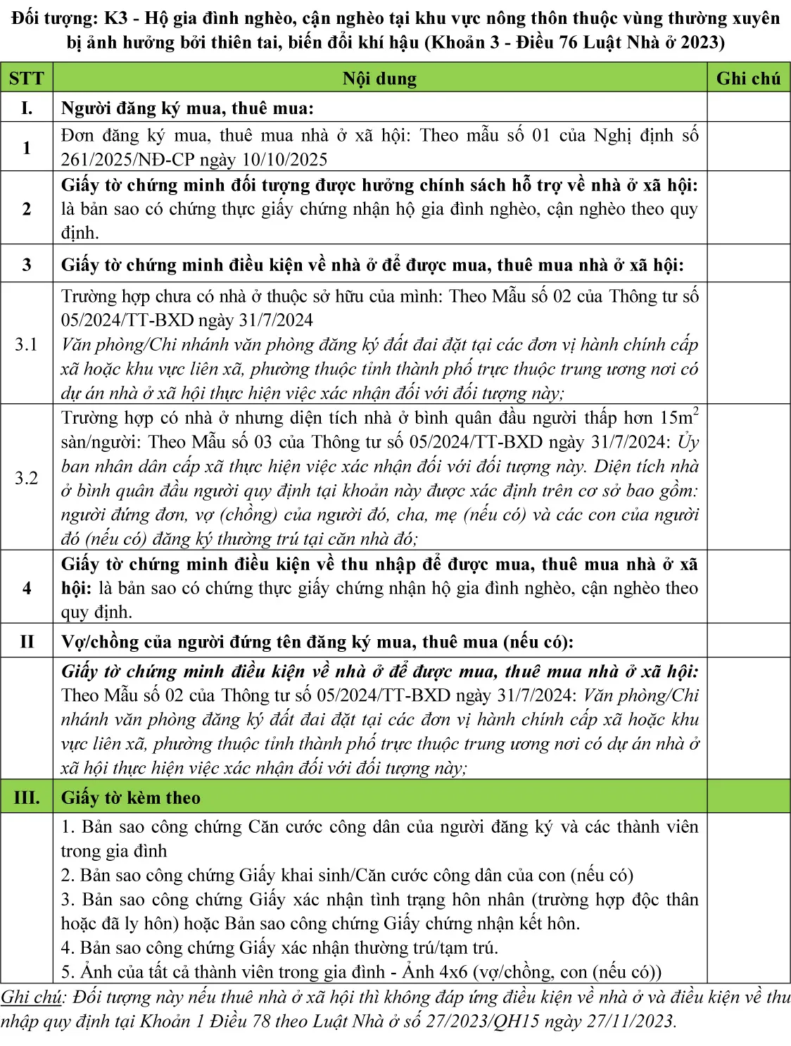 V. Các đối tượng quy định tại Điều 76 Luật Nhà ở 2023