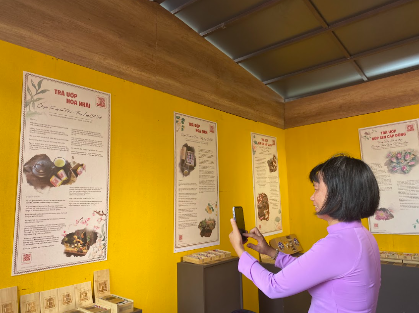 Tại gian trưng bày, bà Đặng Thị Nhung trực tiếp pha trà, trò chuyện cùng du khách, để từng chén trà trở thành cầu nối của cảm xúc, giữa người làm trà và người thưởng trà, giữa Việt Nam và bạn bè năm châu.