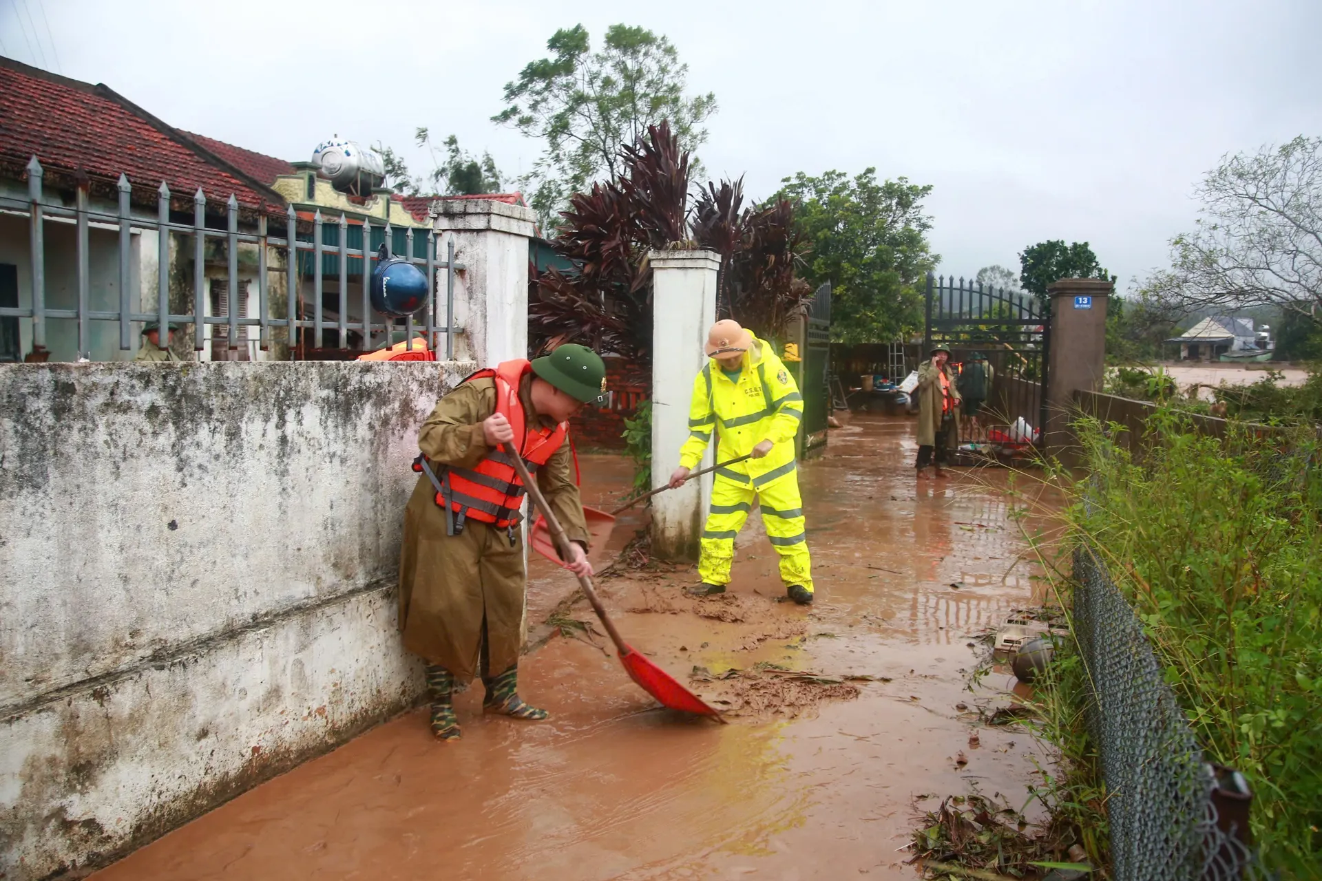 Huy động hàng trăm cán bộ chiến sĩ giúp dân dọn dẹp sau trận ngập lụt
