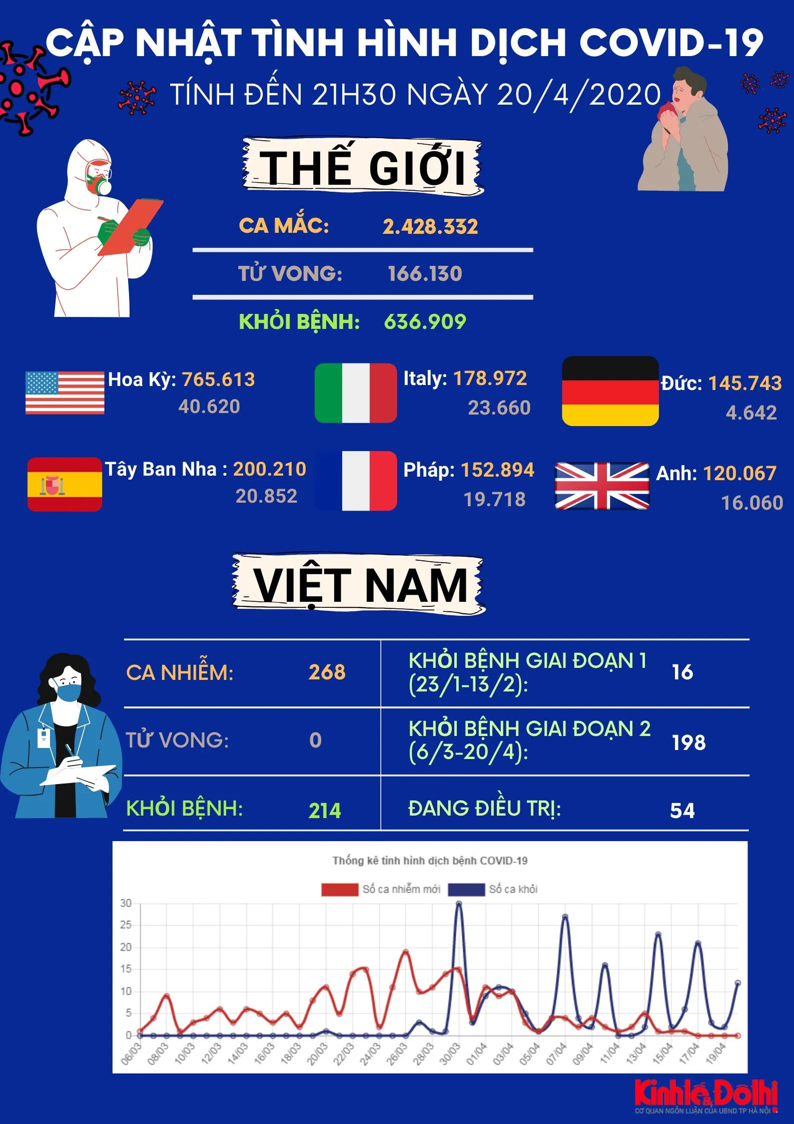 [Infographic] Cập nhật tình hình dịch bệnh Covid-19 ngày 20/4/2020