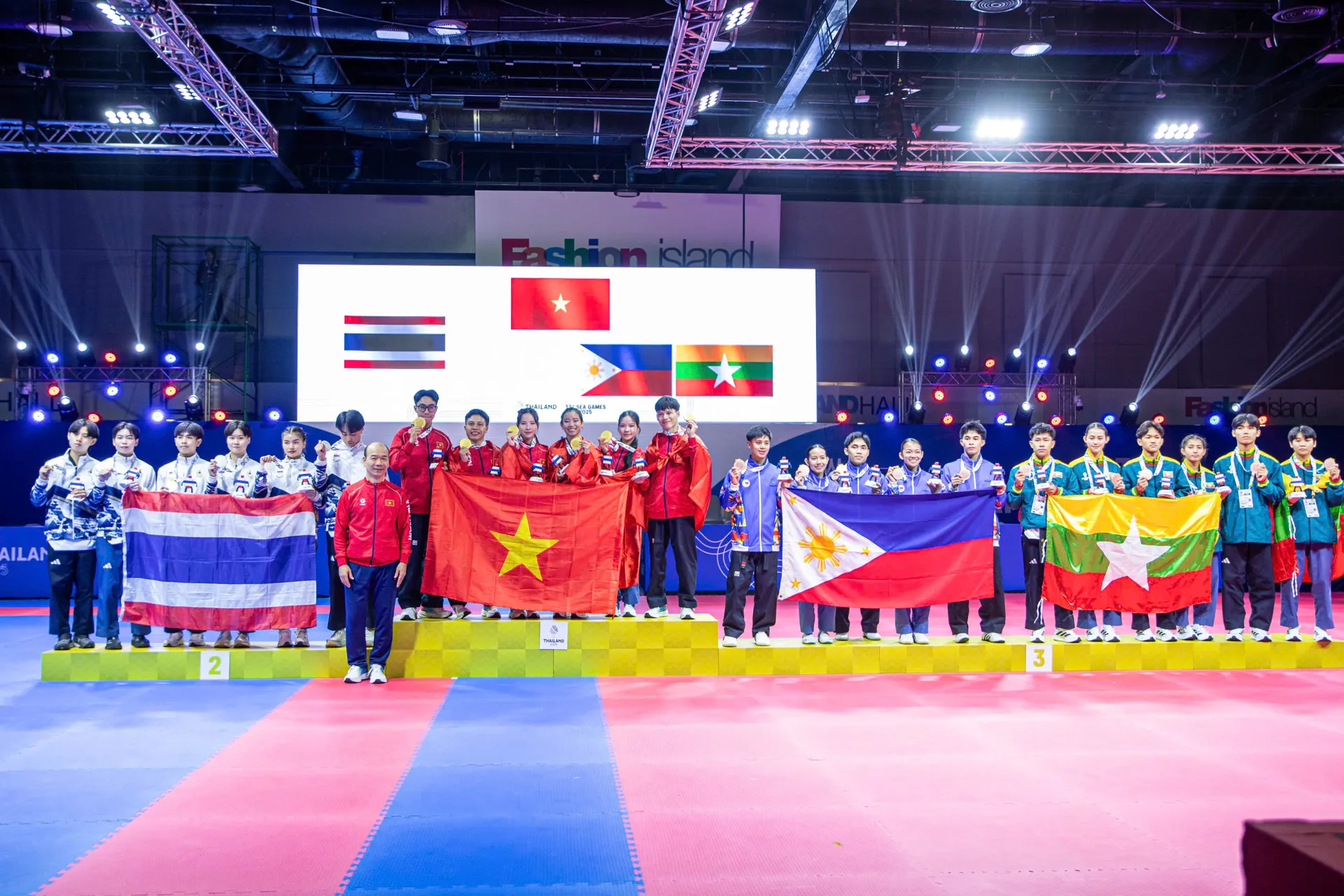 Trong khi đó, taekwondo mang về tấm HCV thứ 2 cho Đoàn Thể thao Việt Nam nhờ các võ sĩ Lê Trần Kim Uyên, Nguyễn Xuân Thành, Trần Đăng Khoa, Trần Hồ Duy, Nguyễn Thị Y Bình và Nguyễn Phan Khánh Hân ở nội dung quyền sáng tạo đồng đội hỗn hợp.