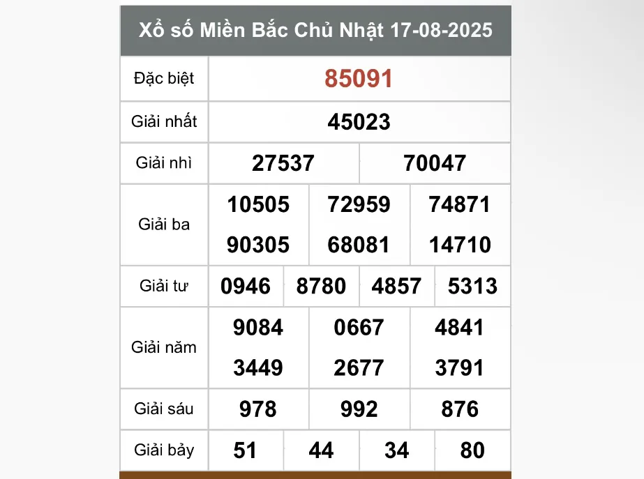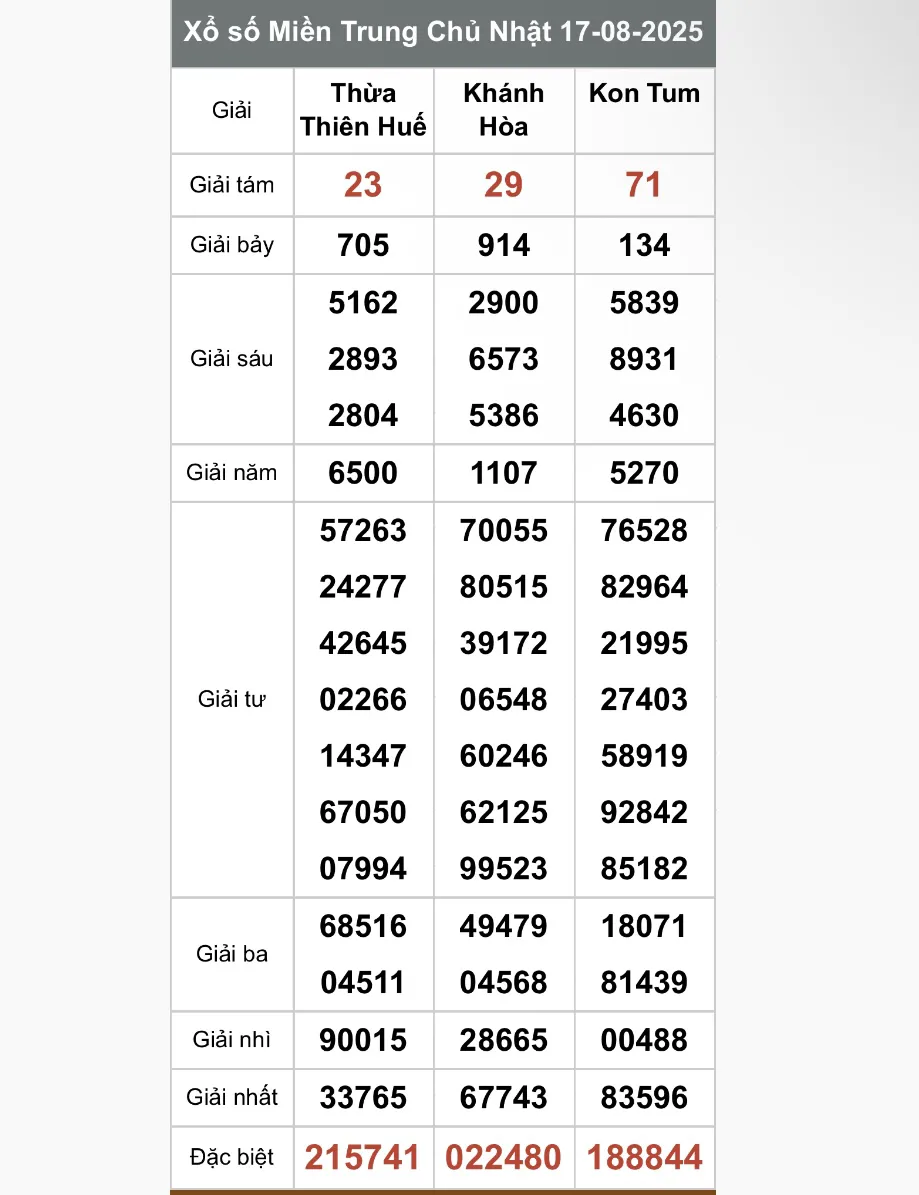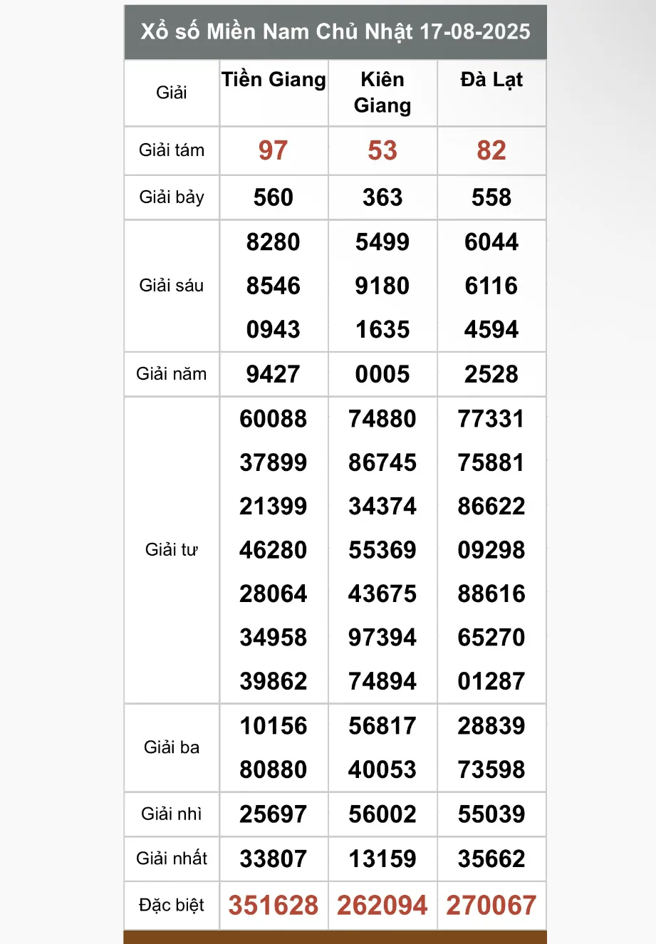 Kết quả xổ số 3 miền Bắc - Trung - Nam hôm nay 17/8/2025