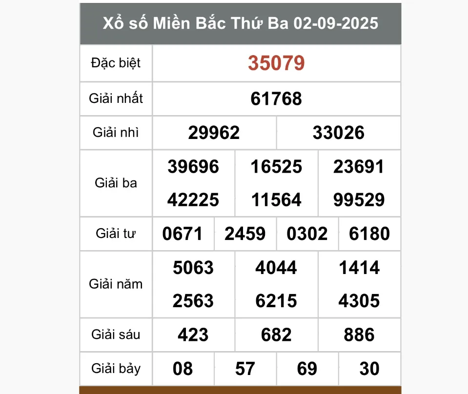 Kết quả xổ số miền Bắc hôm nay 2/9/2025 - Trực tiếp XSMB ngày 2 tháng 9
