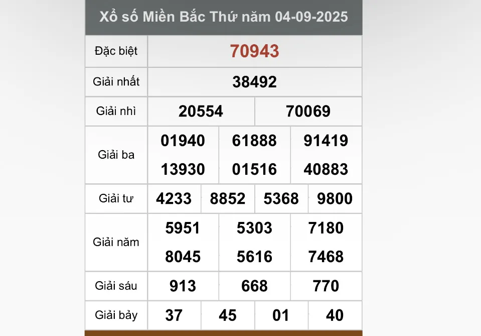 Kết quả xổ số miền Bắc - trực tiếp cập nhật xổ số miền Bắc hôm nay ngày 4/9/2025
