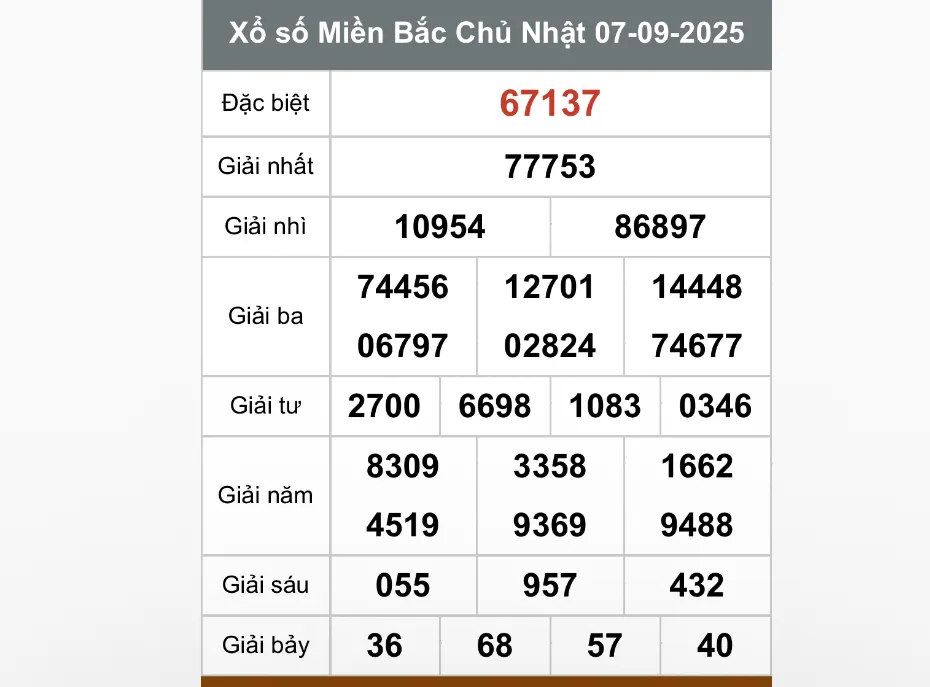 Kết quả xổ số miền Bắc - trực tiếp cập nhật xổ số miền Bắc hôm nay ngày 7/9/2025