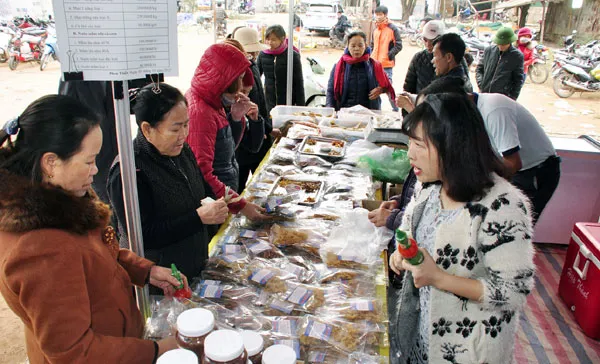 | Người dân xã Bình Phú (huyện Thạch Thất) mua hàng tại phiên chợ Việt tổ chức trên địa bàn xã ngày 16/12. |