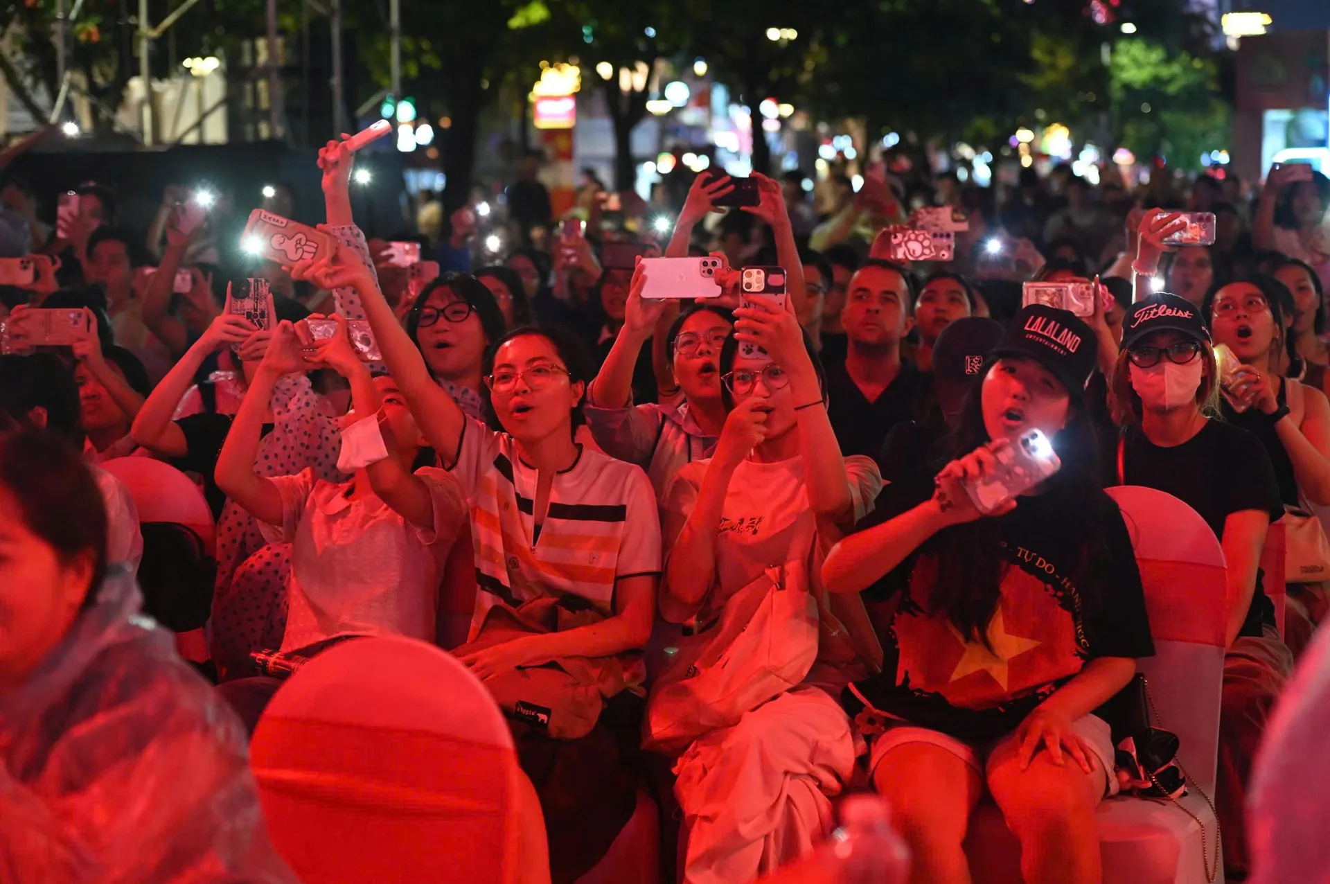 Khán giả xếp hàng để nhận vé miễn phí xem phim “Mưa đỏ” và các phim khác tại Trung tâm Chiếu phim Quốc gia.
