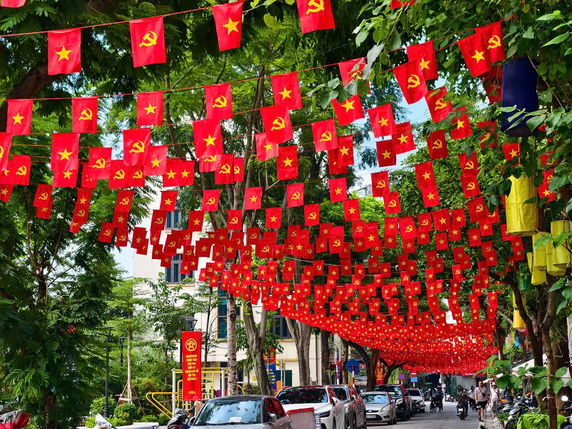 Cờ Tổ quốc tung bay trên tuyến phố thuộc địa bàn phường Ba Đình chào mừng 80 năm Quốc khánh 2/9. Ảnh: TT