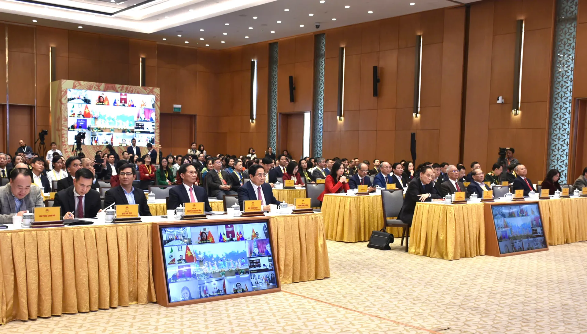 Phiên toàn thể của Hội nghị được tổ chức chiều ngày 25/12, tại Trụ sở Chính phủ do Thủ tướng Chính phủ Phạm Minh Chính, Ủy viên Bộ Chính trị, Bí thư Đảng uỷ Chính phủ chủ trì, với sự tham dự của Bộ trưởng Bộ Ngoại giao Lê Hoài Trung, Bí thư Trung ương Đảng và hơn 400 đại biểu tham dự trực tiếp là lãnh đạo, đại diện các ban, bộ, ngành, địa phương, các tổ chức Nhân dân và đoàn thể chính trị - xã hội và đại biểu người Việt Nam ở nước ngoài tiêu biểu về nước tham dự, kết nối trực tiếp với 98 cơ quan đại diện Việt Nam ở nước ngoài.