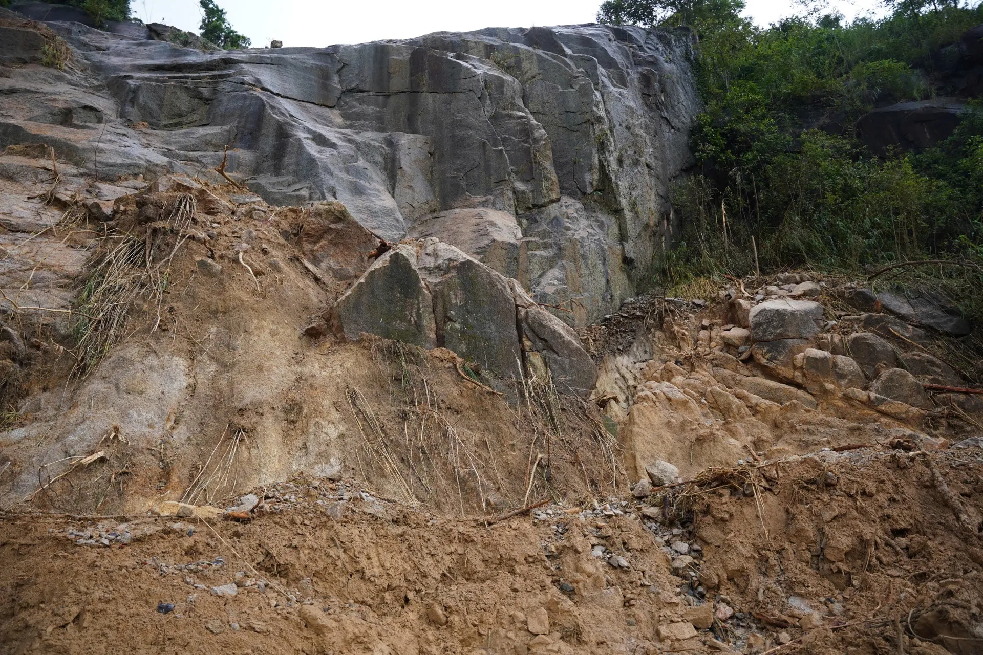 Một số khối đá nặng hàng trăm tấn đã lăn xuống chắn ngang đường, khiến lực lượng bảo trì khó tiếp cận các điểm phía trên.