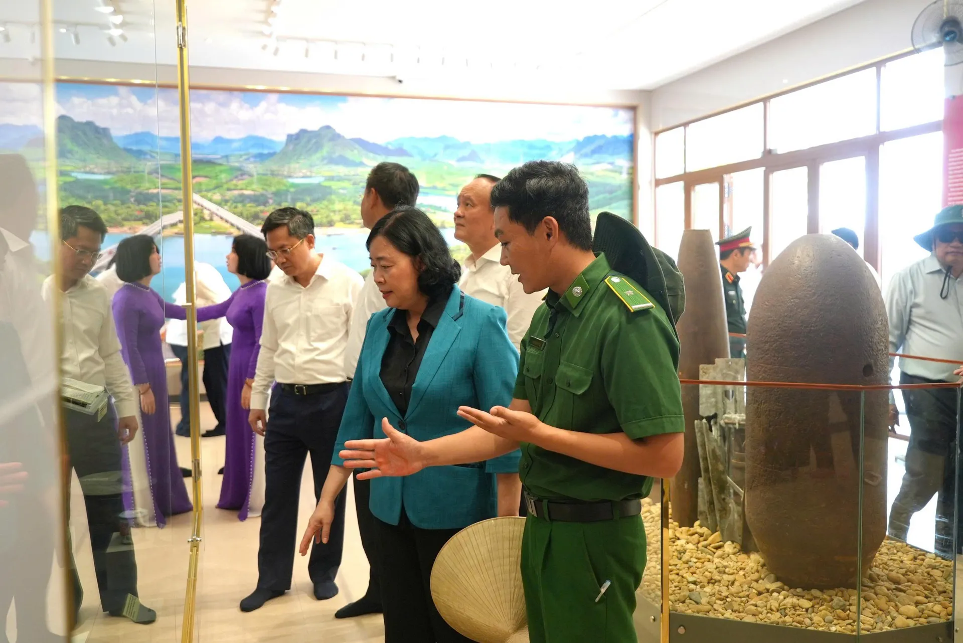 Bí thư Thành ủy Hà Nội Bùi Thị Minh Hoài thăm quan Nhà lưu niệm tại Di tích lịch sử Quốc gia Bến phà II Long Đại ở xã Trường Ninh, tỉnh Quảng Trị.