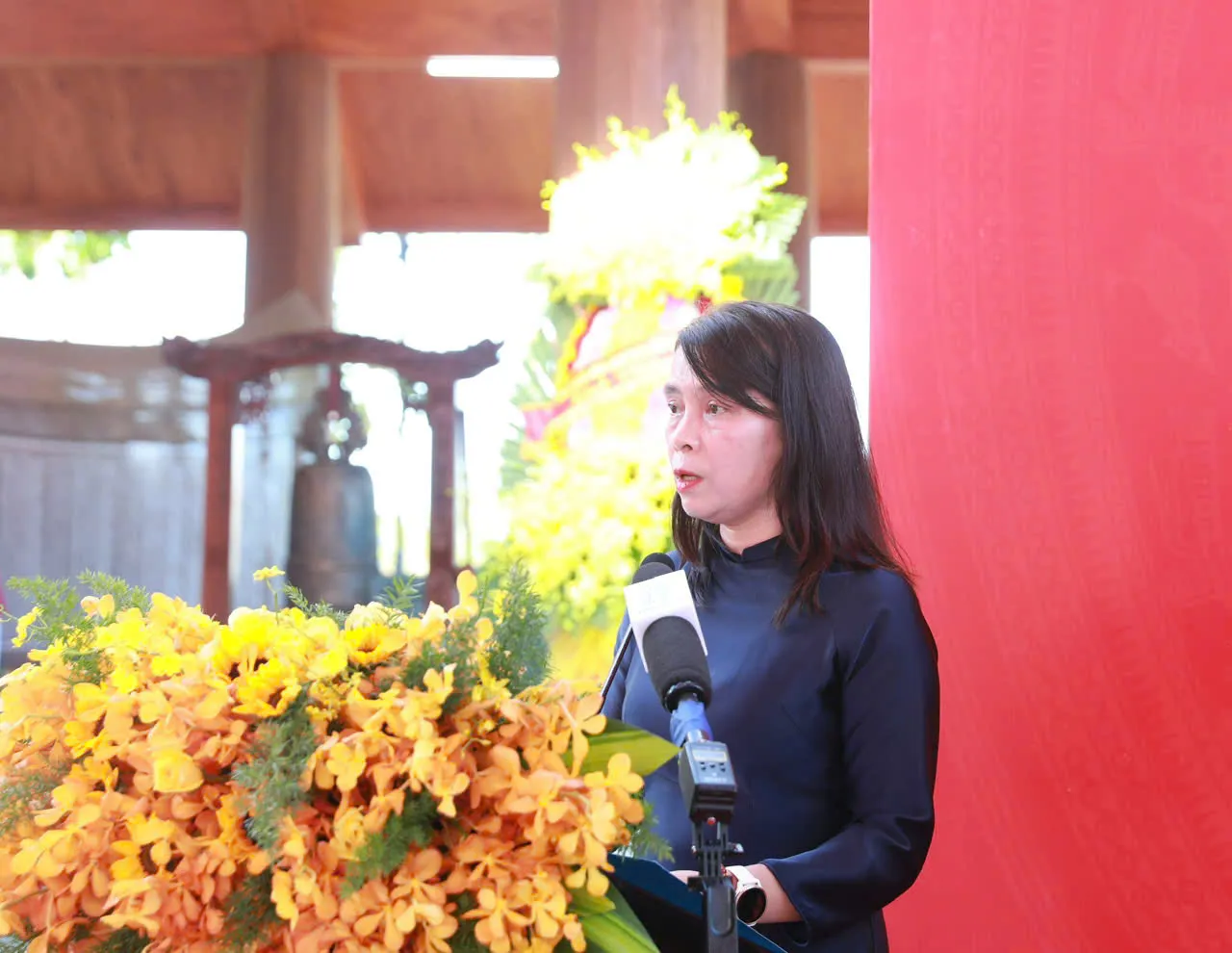 Giám đốc Sở Nội vụ tỉnh Quảng Trị Lê Thị Thanh trình bày báo cáo tại Lễ khánh thành.