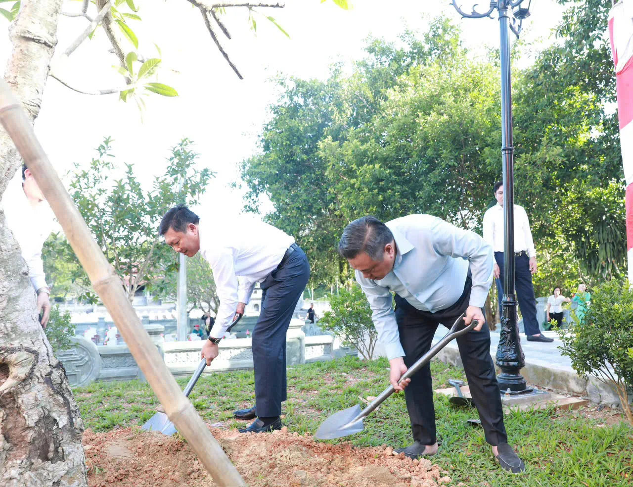 Bí thư Thành ủy Hà Nội Bùi Thị Minh Hoài cùng các đồng chí lãnh đạo của TP Hà Nội và tỉnh Quảng Trị trồng cây lưu niệm tại khu mộ liệt sĩ TP Hà Nội tại Nghĩa trang liệt sĩ Quốc gia Trường Sơn.
