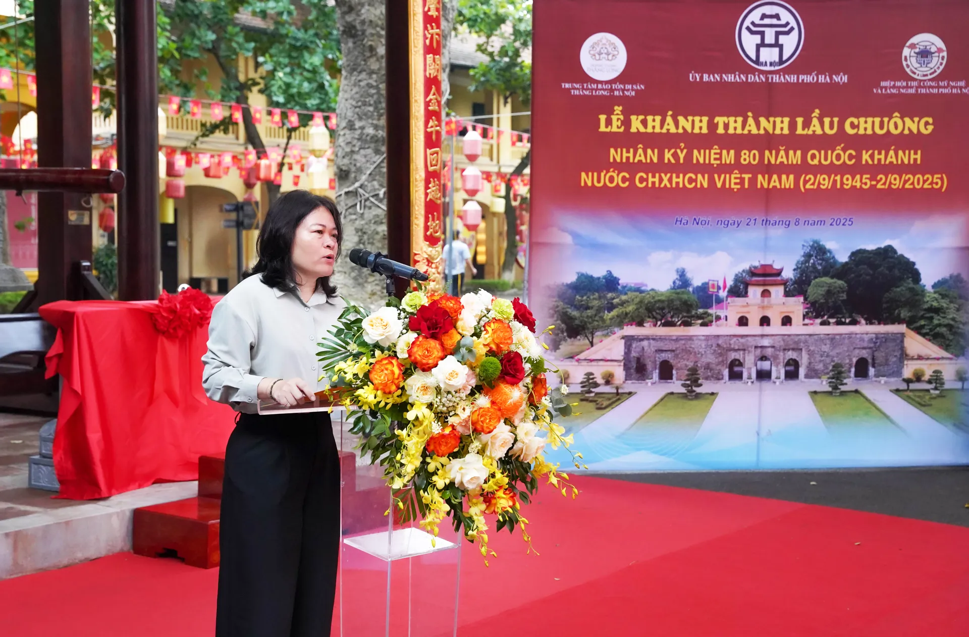 Phó Giám đốc Trung tâm Bảo tồn di sản Thăng Long - Hà Nội Nguyễn Hồng Chi phát biểu tại lễ khánh thành.