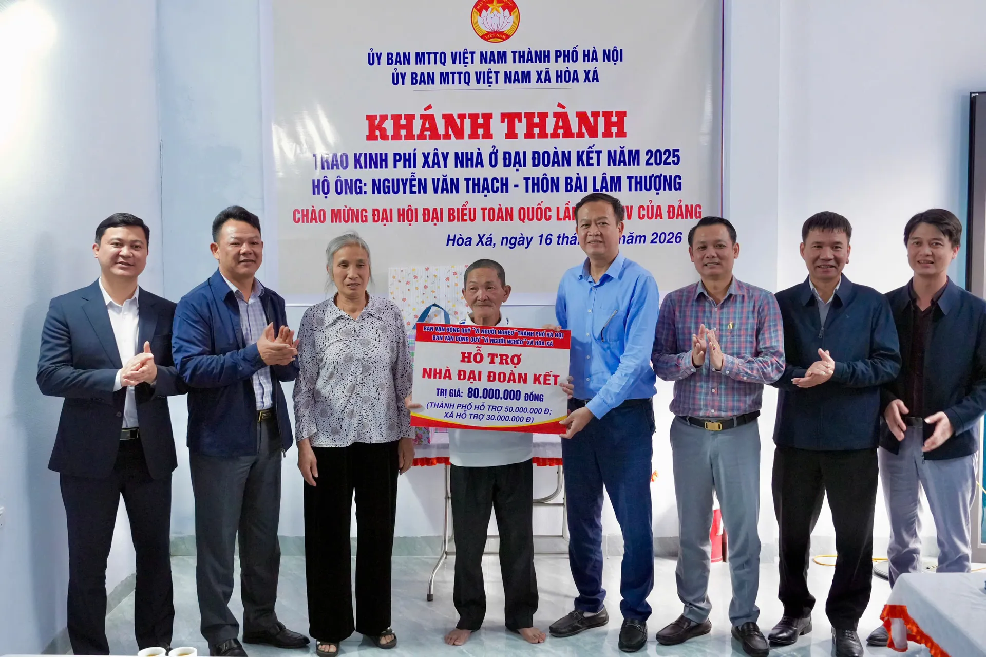Kinhtedothi - Chiều 16/1, Ủy ban MTTQ Việt Nam xã Hòa Xá tổ chức khánh thành, trao kinh phí hỗ trợ xây dựng nhà Đại đoàn kết cho hộ ông Nguyễn Văn Thạch, sinh năm 1956, trú tại thôn Bài Lâm Thượng, là hộ cận nghèo có hoàn cảnh đặc biệt khó khăn trên địa bàn xã. Đây là hoạt động thiết thực chào mừng Đại hội đại biểu toàn quốc lần thứ XIV của Đảng