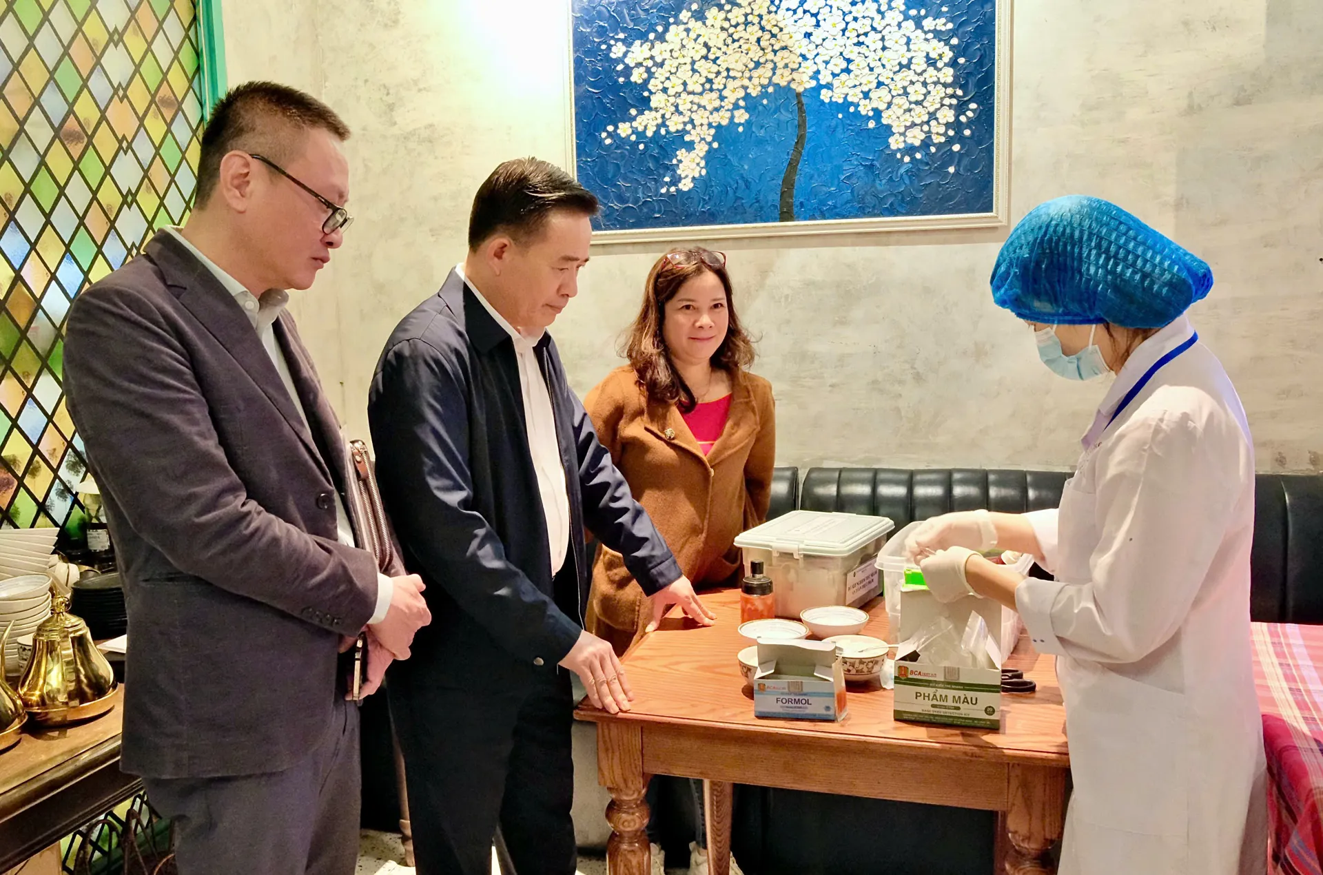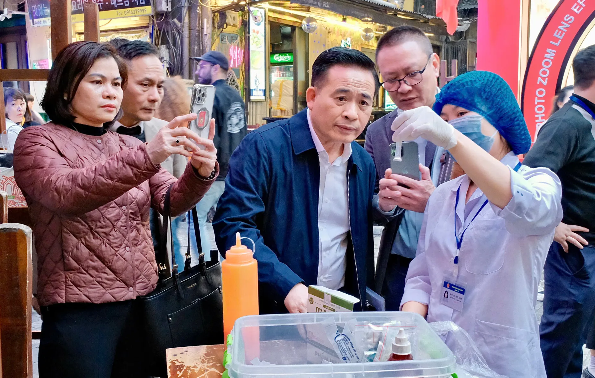 Đoàn khảo sát một số cơ sở kinh doanh ăn uống trên địa bàn phường Hoàn Kiếm và lấy mẫu kiểm tra ngẫu nhiên một số thực phẩm