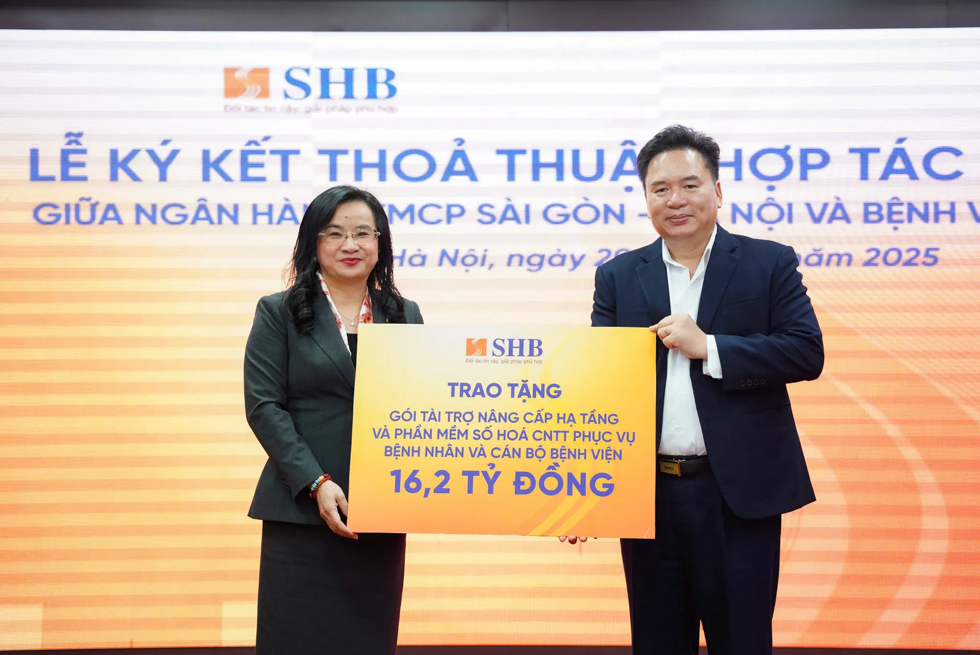 Trong khuôn khổ lễ ký kết, SHB đã trao tặng Bệnh viện Thanh Nhàn gói tài trợ nâng cấp hạ tầng và phần mềm số hóa CNTTvới tổng giá trị 16,2 tỷ đồng. Gói tài trợ tập trung vào việc hiện đại hóa hệ thống hạ tầng CNTT và các phần mềm phục vụ công tác KCB, quản lý bệnh viện, góp phần nâng cao trải nghiệm của người bệnh, đồng thời hỗ trợ hiệu quả công tác chuyên môn, quản trị và điều hành của đội ngũ cán bộ, nhân viên y tế.