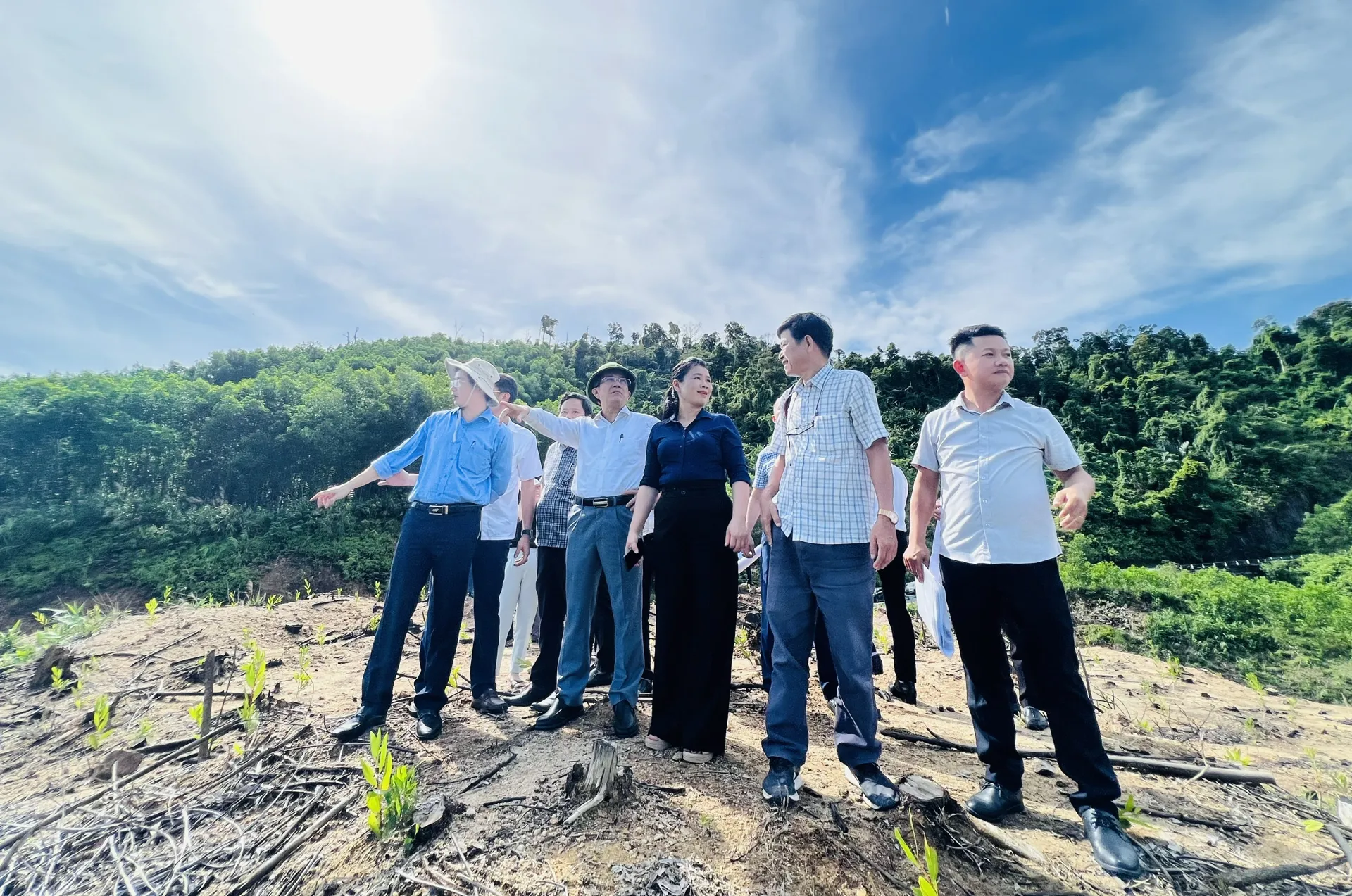Đoàn công tác của UBND TP Đà Nẵng kiểm tra dự án nuôi heo tại xã Quế Phước.