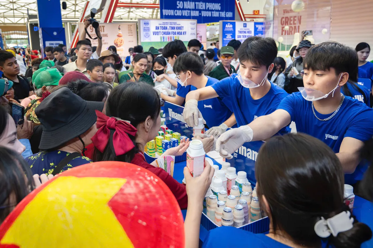 Vinamilk dành khoảng 101.000 sản phẩm để khách tham quan được thưởng thức nhiều hương vị từ sữa tươi, sữa hạt đến kem mát lành. (Ảnh: Vi Nam)