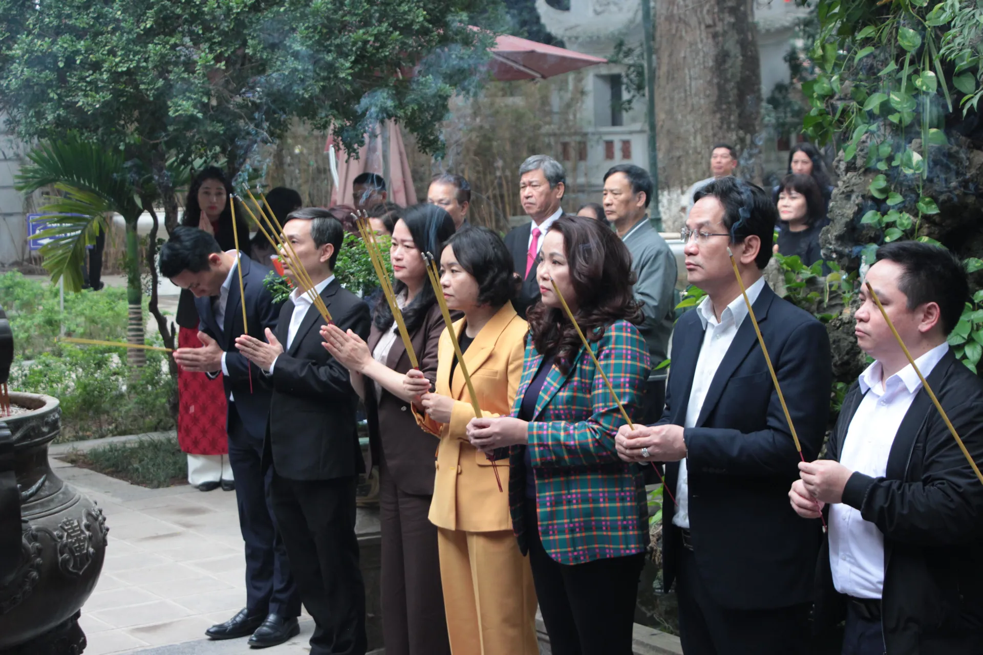 Đại biểu dâng hương tại Đền Quán Thánh.