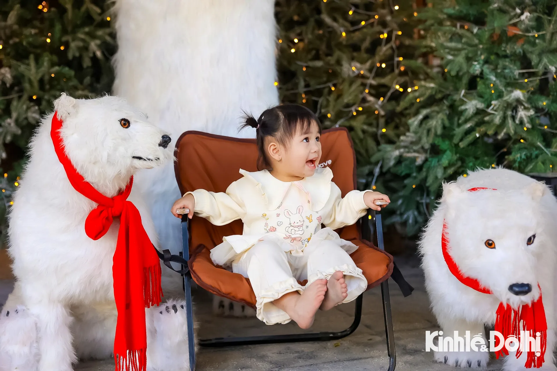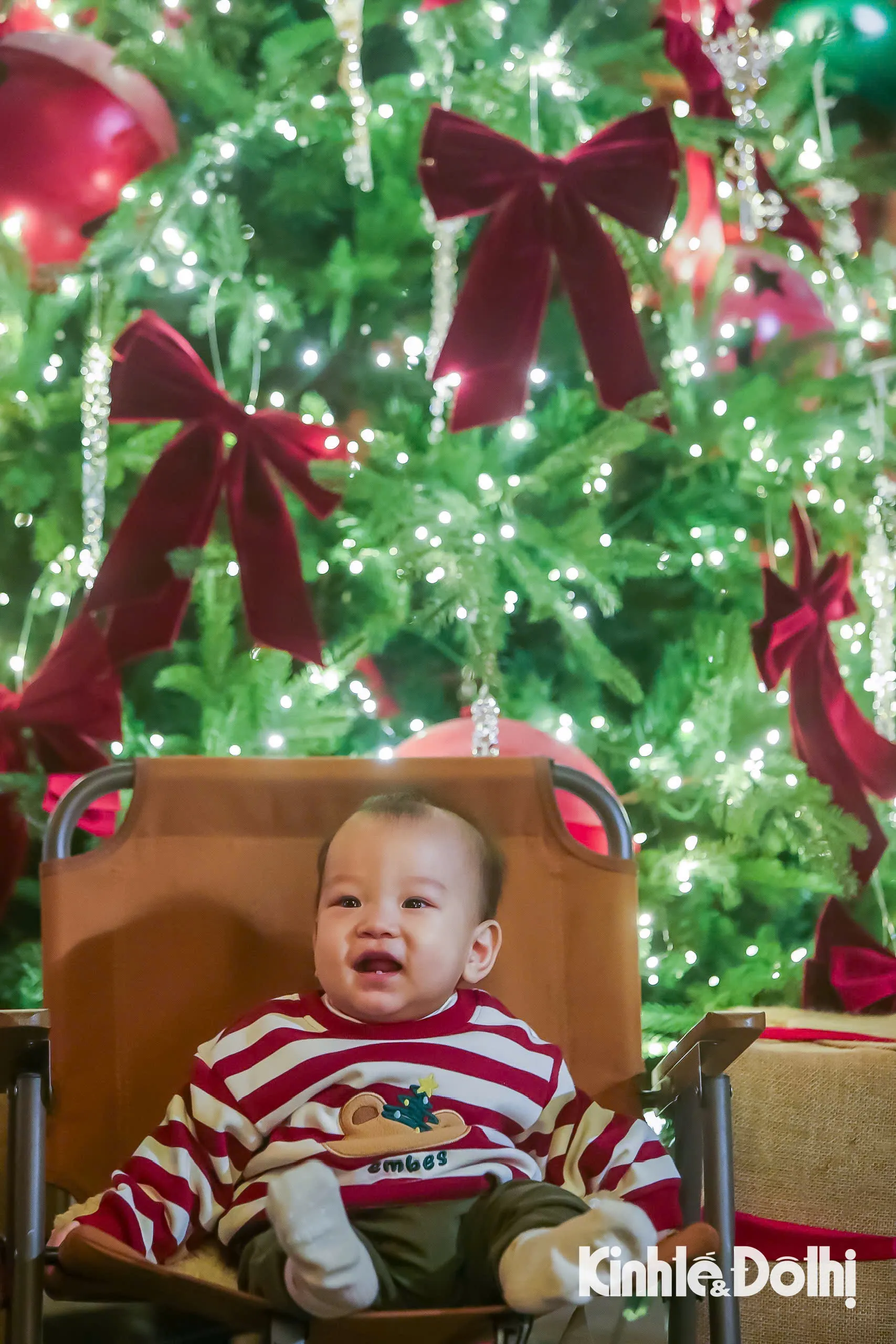 Em bé hào hứng khi cùng bố mẹ tới chụp ảnh trong không khí Giáng sinh.