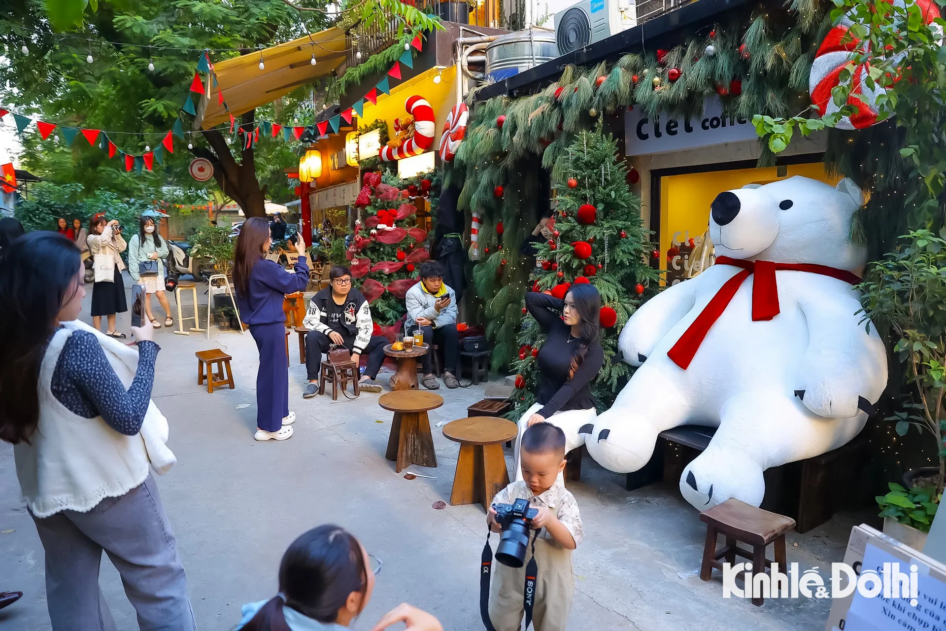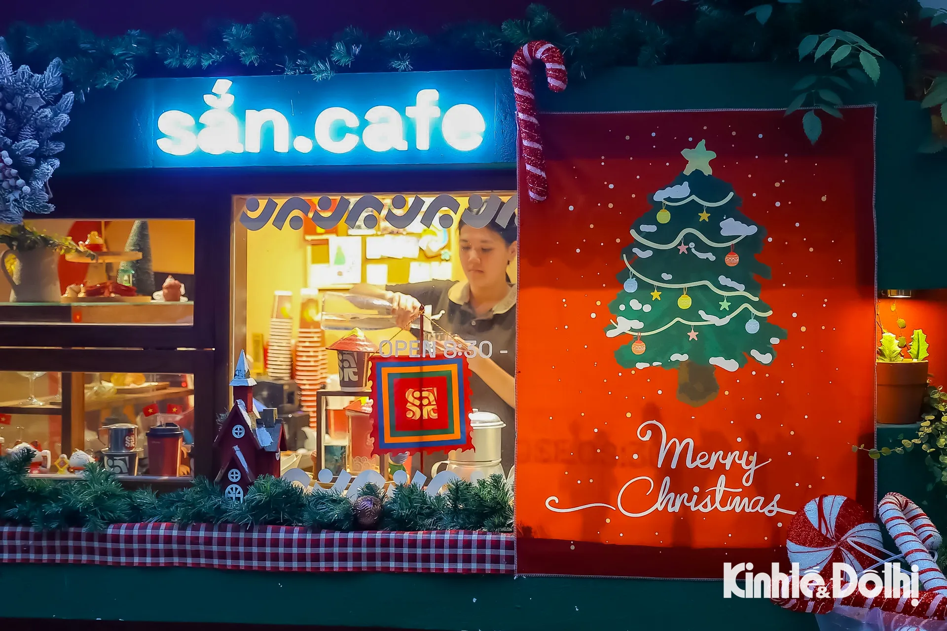 Không khí Giáng sinh lan tỏa khắp quán cà phê với tiểu cảnh được đầu tư công phu.
