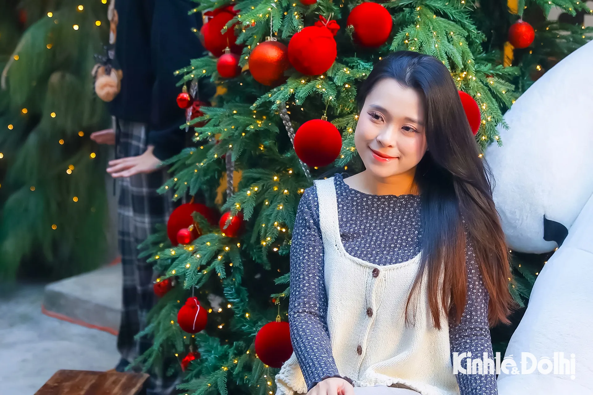 Cây thông Noel rực rỡ ánh đèn là điểm nhấn thu hút giới trẻ check-in.