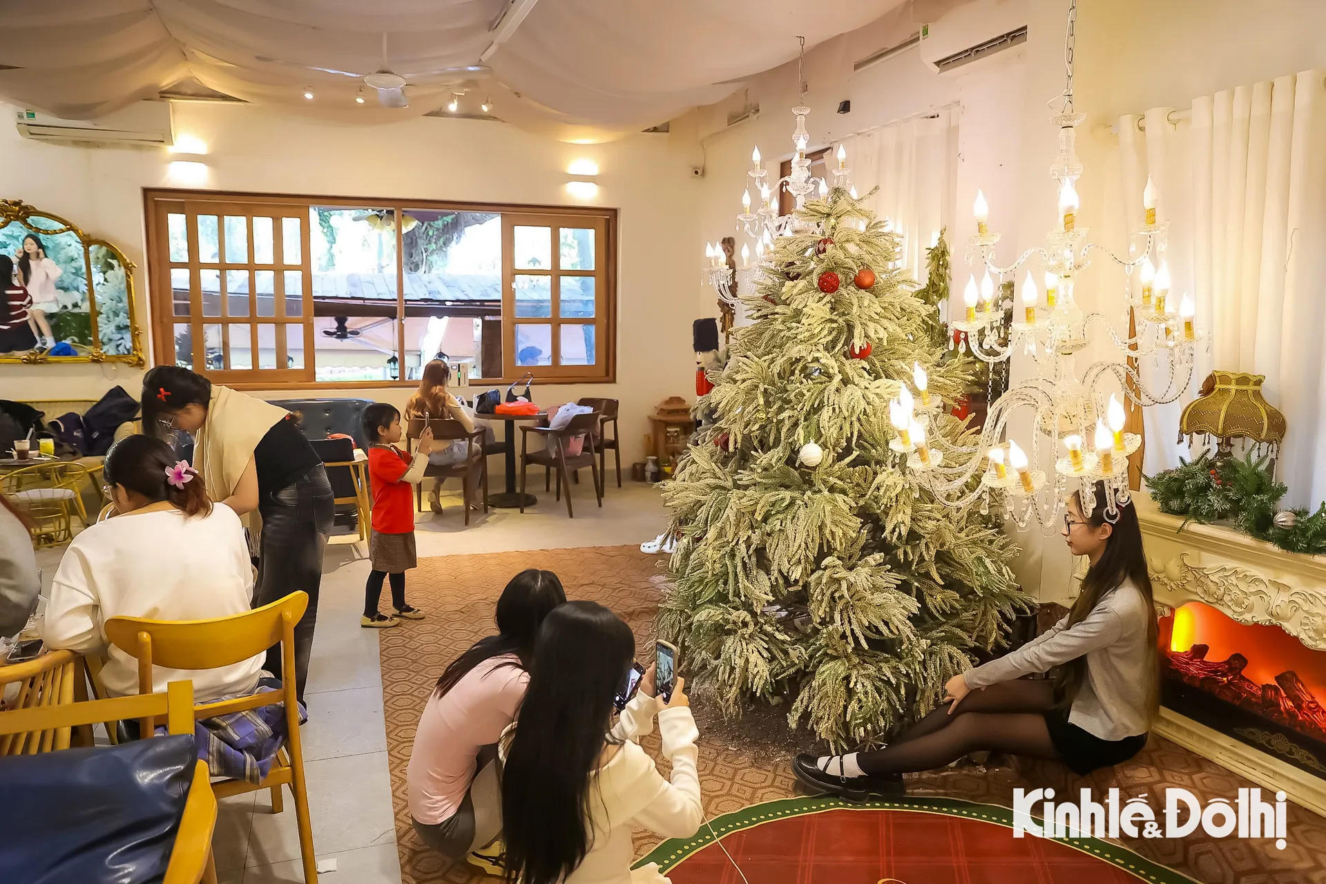 Kinhtedothi - Những ngày này, nhiều quán cà phê ở Hà Nội được trang hoàng rực rỡ với cây thông, ánh đèn, lò sưởi và tuyết rơi, tạo nên khung cảnh mùa đông châu Âu cực lãng mạn, thu hút đông đảo bạn trẻ đến chụp ảnh.