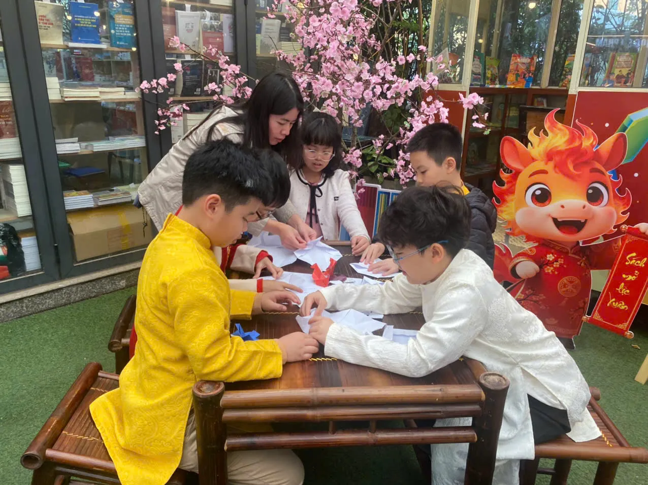 Không gian xếp giấy thu hút nhiều em học sinh