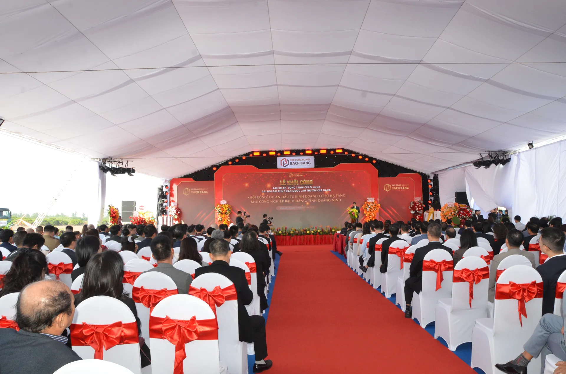 Lễ khởi công Dự án Đầu tư Kinh doanh cơ sở hạ tầng Khu công nghiệp Bạch Đằng (Quảng Ninh) được tổ chức nhằm phát triển công nghiệp, hạ tầng và thu hút đầu tư, thiết thực chào mừng Đại hội đại biểu toàn quốc lần thứ XIV của Đảng.