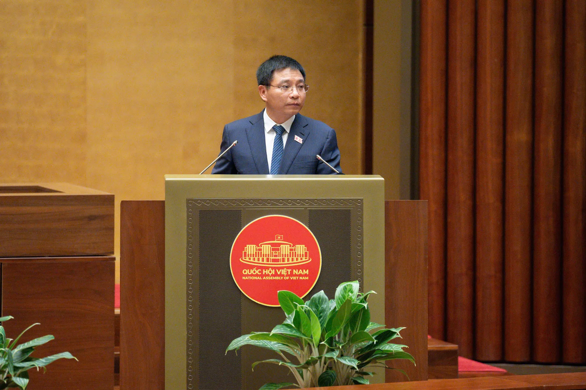 Bộ trưởng Bộ Tài chính Nguyễn Văn Thắng trình bày tờ trình. Ảnh: Quochoi.vn