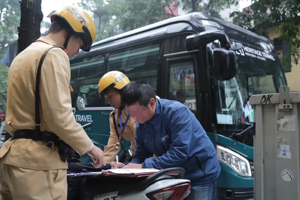Tài xế cố tình đi vào phố cổ giờ cấm phải ký biên bản xử phạt. Ảnh: Phạm Công