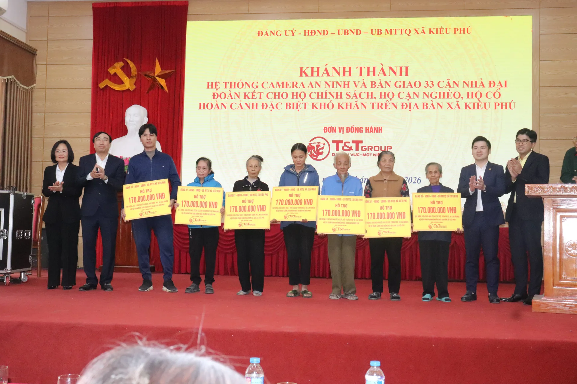 Ngay sau hội nghị, lãnh đạo xã Kiều Phú cùng đại diện Tập đoàn T&T đã trực tiếp đến thăm, trao quà và cắt băng khánh thành nhà Đại đoàn kết tại một số hộ gia đình trên địa bàn, khép lại chương trình trong không khí ấm áp, lan tỏa tinh thần sẻ chia và khối đại đoàn kết toàn dân tộc.