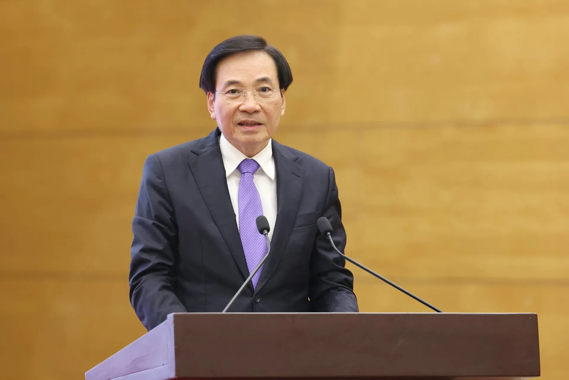 Bộ trưởng, Chủ nhiệm Văn phòng Chính phủ Trần Văn Sơn phát biểu tại buổi họp báo. Ảnh: VGP.