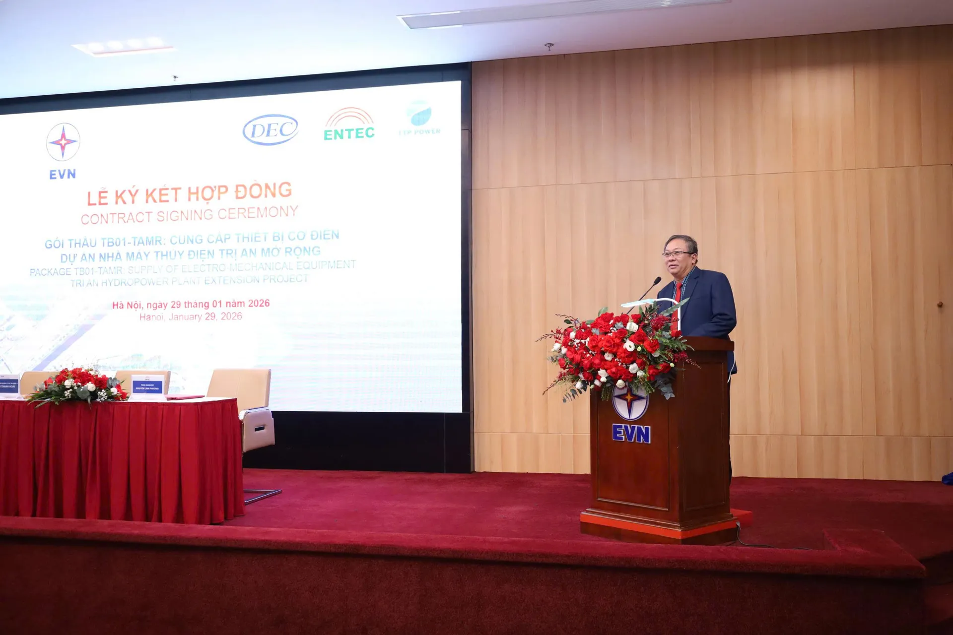 Kinhtedothi - Chiều 29/1/2026, tại Hà Nội, Tập đoàn Điện lực Việt Nam (EVN) và Liên danh DEC-ENTEC-TTP tổ chức Lễ ký kết Hợp đồng Gói thầu TB01-TAMR: Cung cấp thiết bị cơ điện - Dự án Nhà máy Thủy điện (NMTĐ) Trị An mở rộng, tỉnh Đồng Nai.