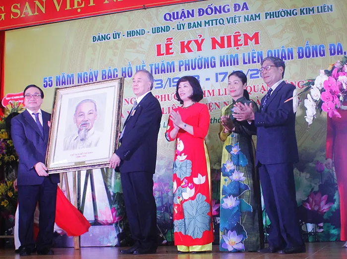Tại lễ kỷ niệm, thay mặt lãnh đạo TP, Bí thư Thành ủy Hoàng Trung Hải đã trao tặng Đảng bộ, chính quyền và Nhân dân phường Kim Liên bức tranh chân dung Chủ tịch Hồ Chí Minh.
