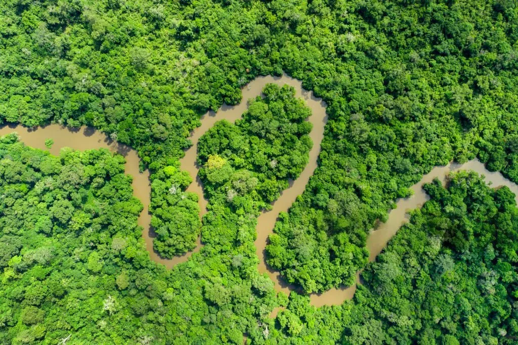 Uốn khúc dòng sông giữa rừng nhiệt đới lưu vực Congo. Ảnh: iStock