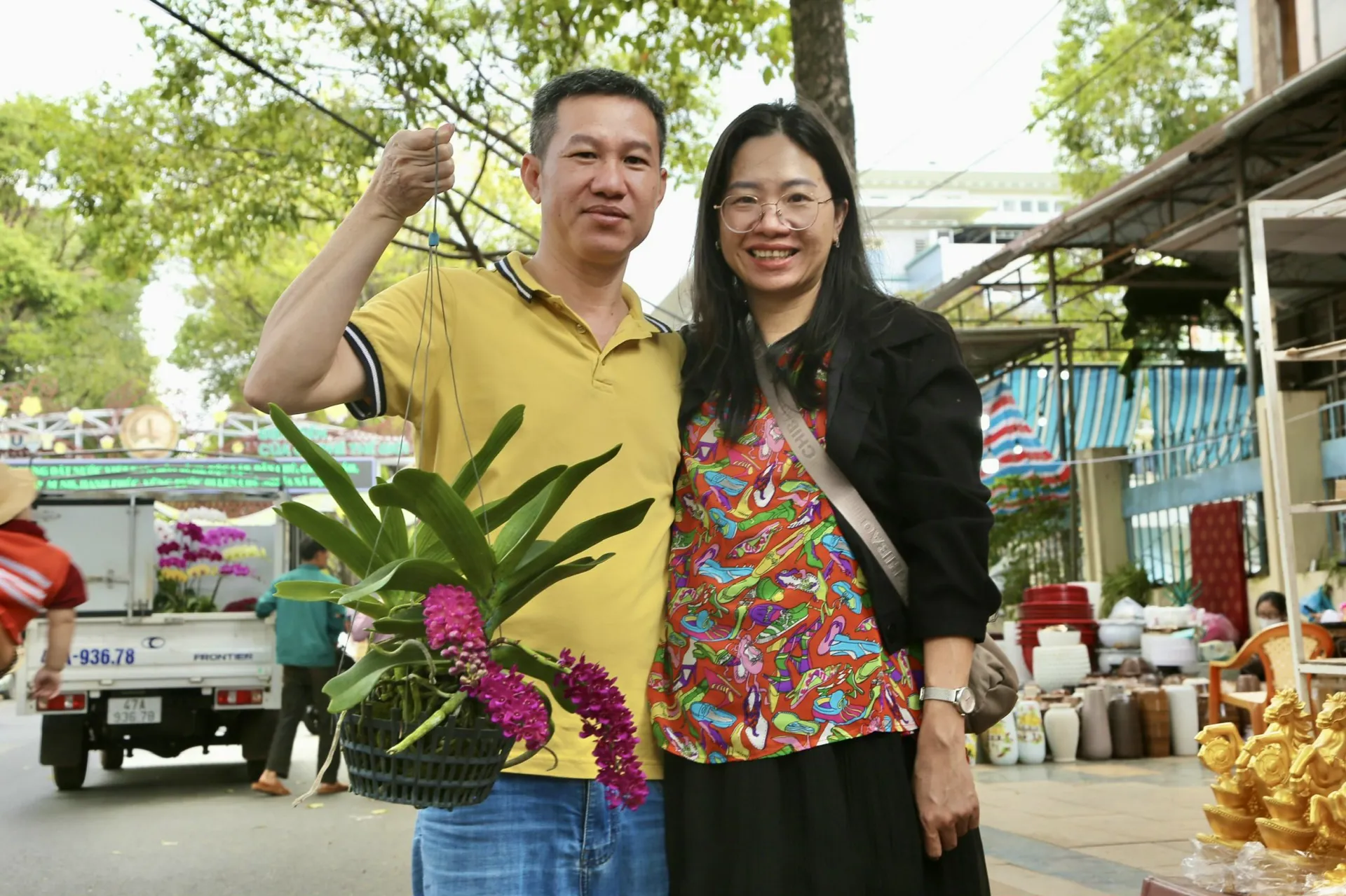 Giữa không khí rộn ràng của chợ Tết, nụ cười rạng rỡ của đôi vợ chồng bên giò Nghinh Xuân vừa chọn được toát lên niềm hạnh phúc giản đơn mà ấm áp. Hình ảnh người chồng nâng niu giò lan tím, bên cạnh là ánh mắt mãn nguyện của người vợ, chính là biểu tượng đẹp nhất cho sự gắn kết và đồng lòng. Sau một năm bộn bề, việc cùng nhau mang sắc Xuân về trang hoàng tổ ấm không chỉ là thói quen, mà còn là lời hứa về một năm mới an khang, nơi yêu thương luôn được vun đắp và song hành.