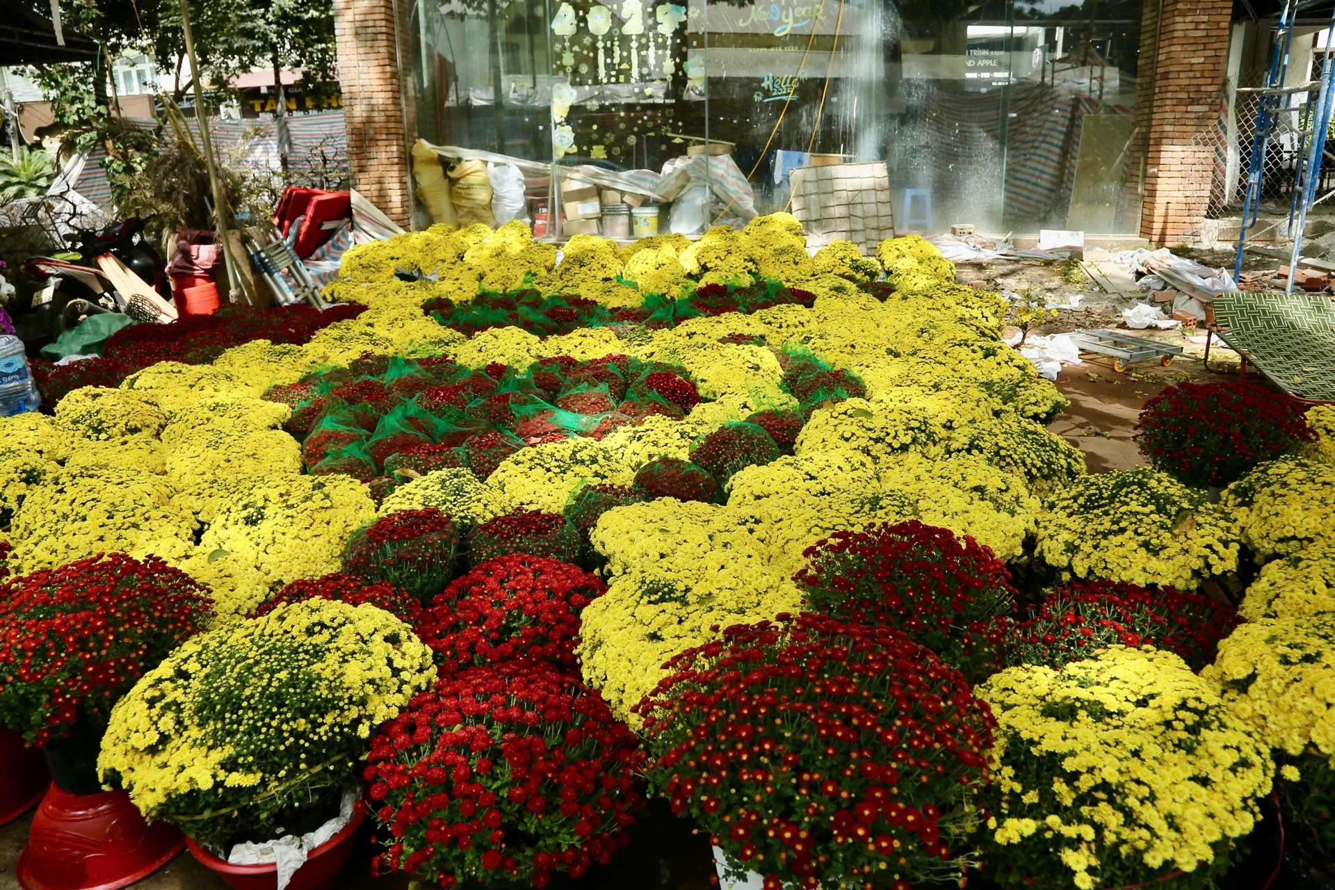 Bước chân vào không gian này, du khách sẽ ngay lập tức bị choáng ngợp bởi sắc vàng rực rỡ của những chậu cúc mâm xôi, cúc đại đóa xếp hàng dài tăm tắp như những dải lụa.