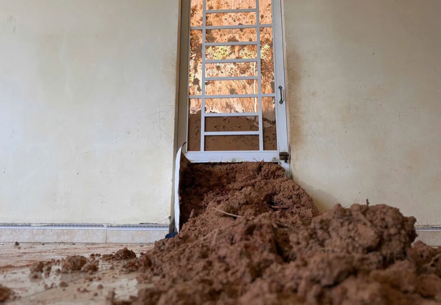 Đất đá tràn vào nhà dân, làm hư hỏng một phần công trình sau đợt mưa lớn.