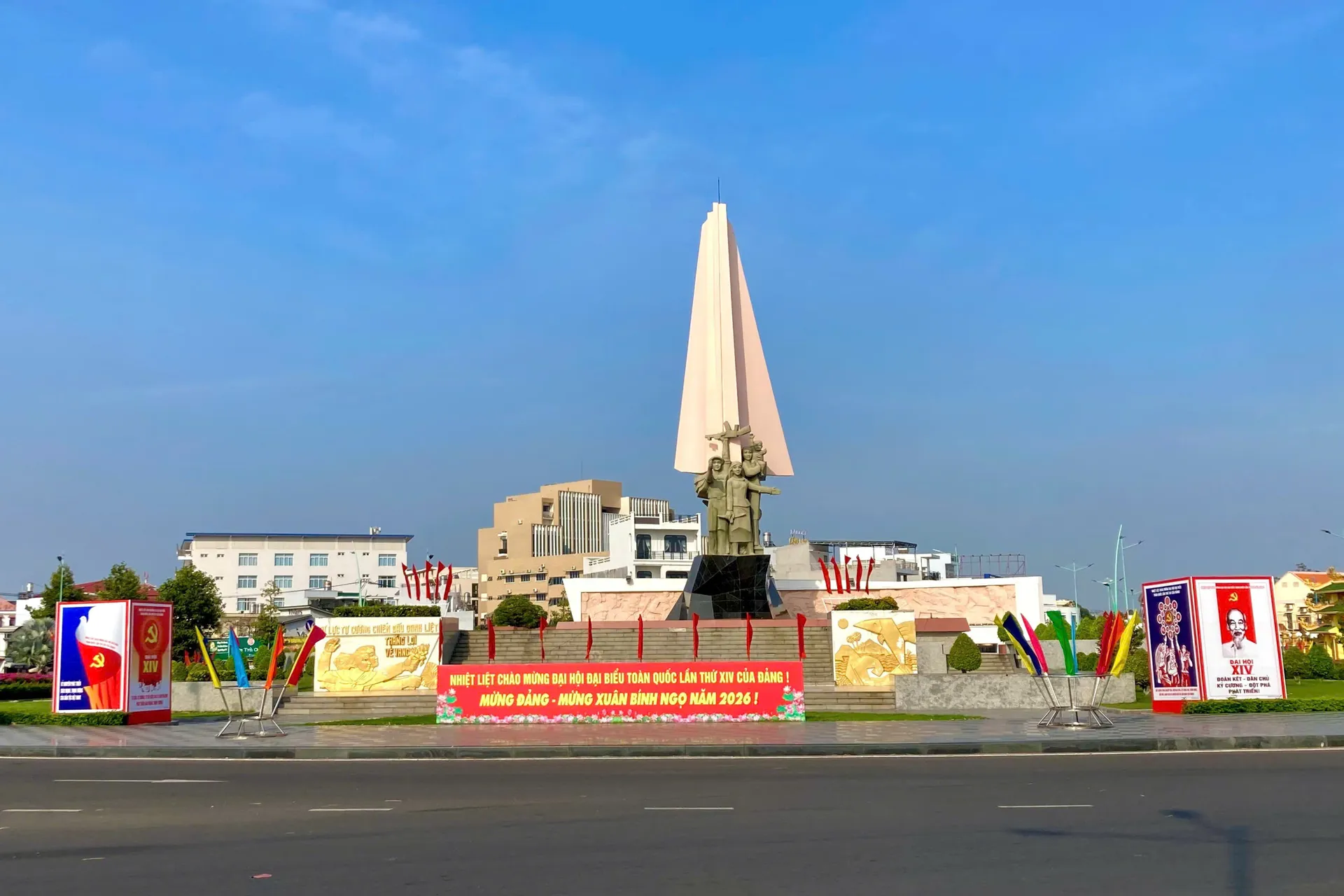 Các pano, tranh cổ động mang biểu trưng Đại hội, hình ảnh cờ Đảng, cờ Tổ quốc được bố trí tại những vị trí nổi bật, góp phần làm đẹp cảnh quan và thể hiện khí thế phấn khởi của toàn tỉnh hướng về sự kiện chính trị quan trọng của đất nước.