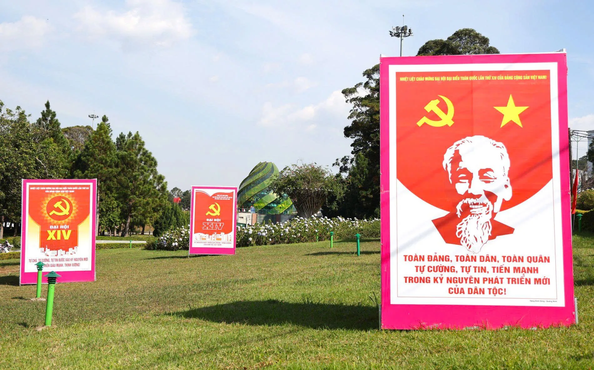 Hình ảnh Chủ tịch Hồ Chí Minh cùng các khẩu hiệu tuyên truyền xuất hiện trang trọng trên nhiều tuyến phố, quảng trường, cơ quan, đơn vị, không chỉ tạo diện mạo rực rỡ cho đô thị mà còn gửi gắm niềm tin, kỳ vọng của Đảng bộ, chính quyền và Nhân dân các dân tộc tỉnh Lâm Đồng vào thành công của Đại hội XIV của Đảng.