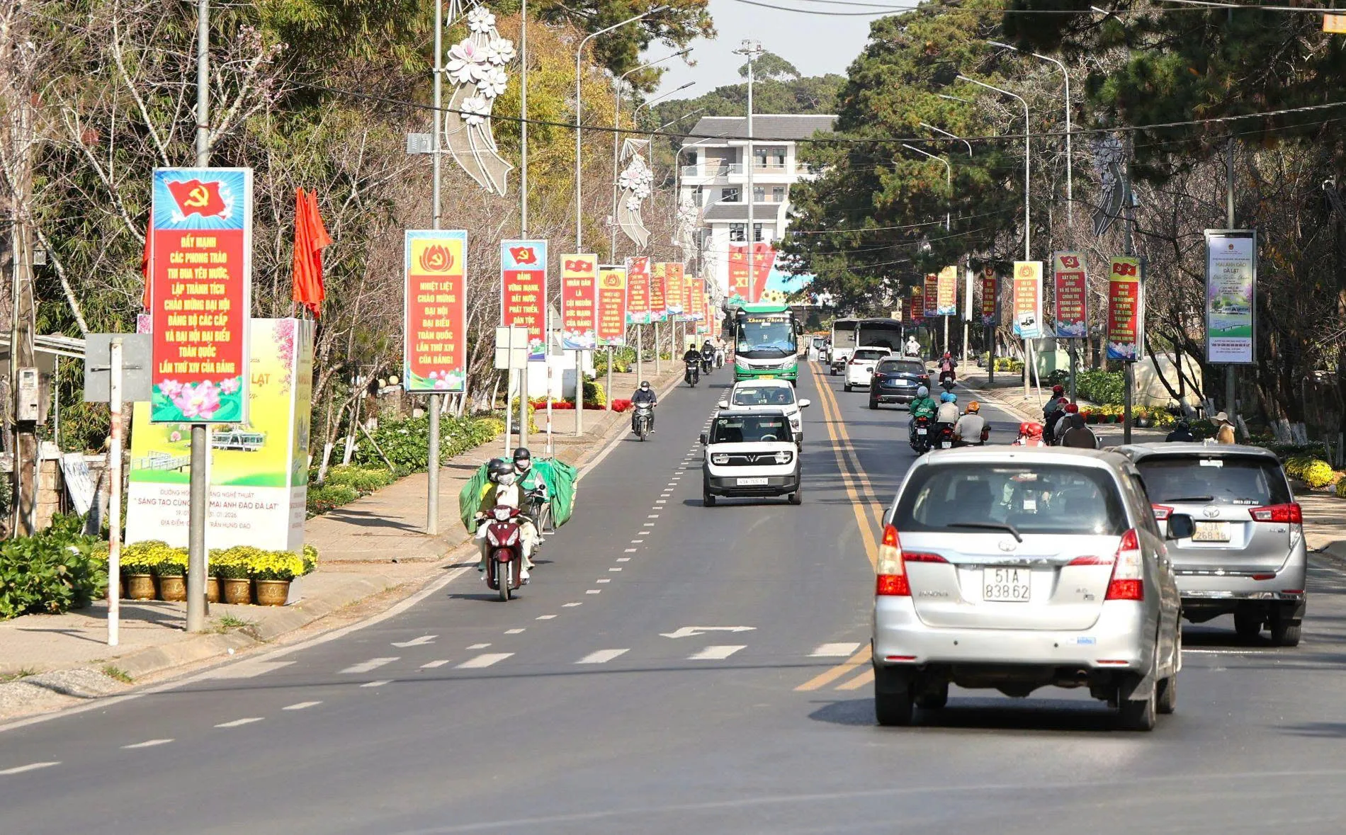 Rực rỡ cờ hoa, pano, khẩu hiệu chào mừng Đại hội đại biểu toàn quốc lần thứ XIV của Đảng tại tỉnh Lâm Đồng.