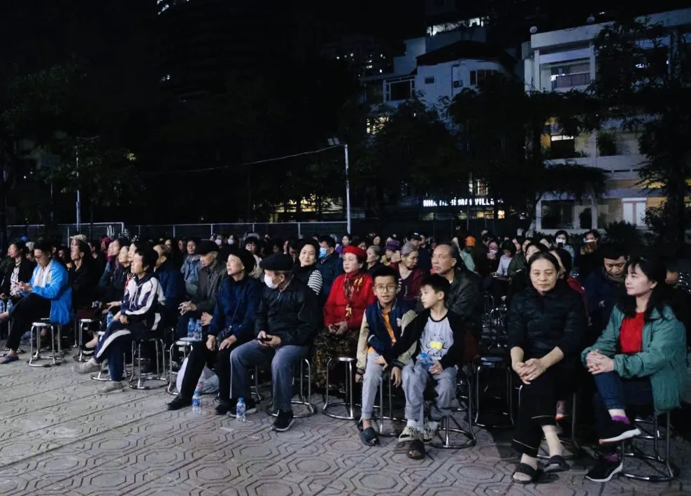 Đông đảo người dân tham dự buổi chiếu phim tại Trường THPT Phan Huy Chú.