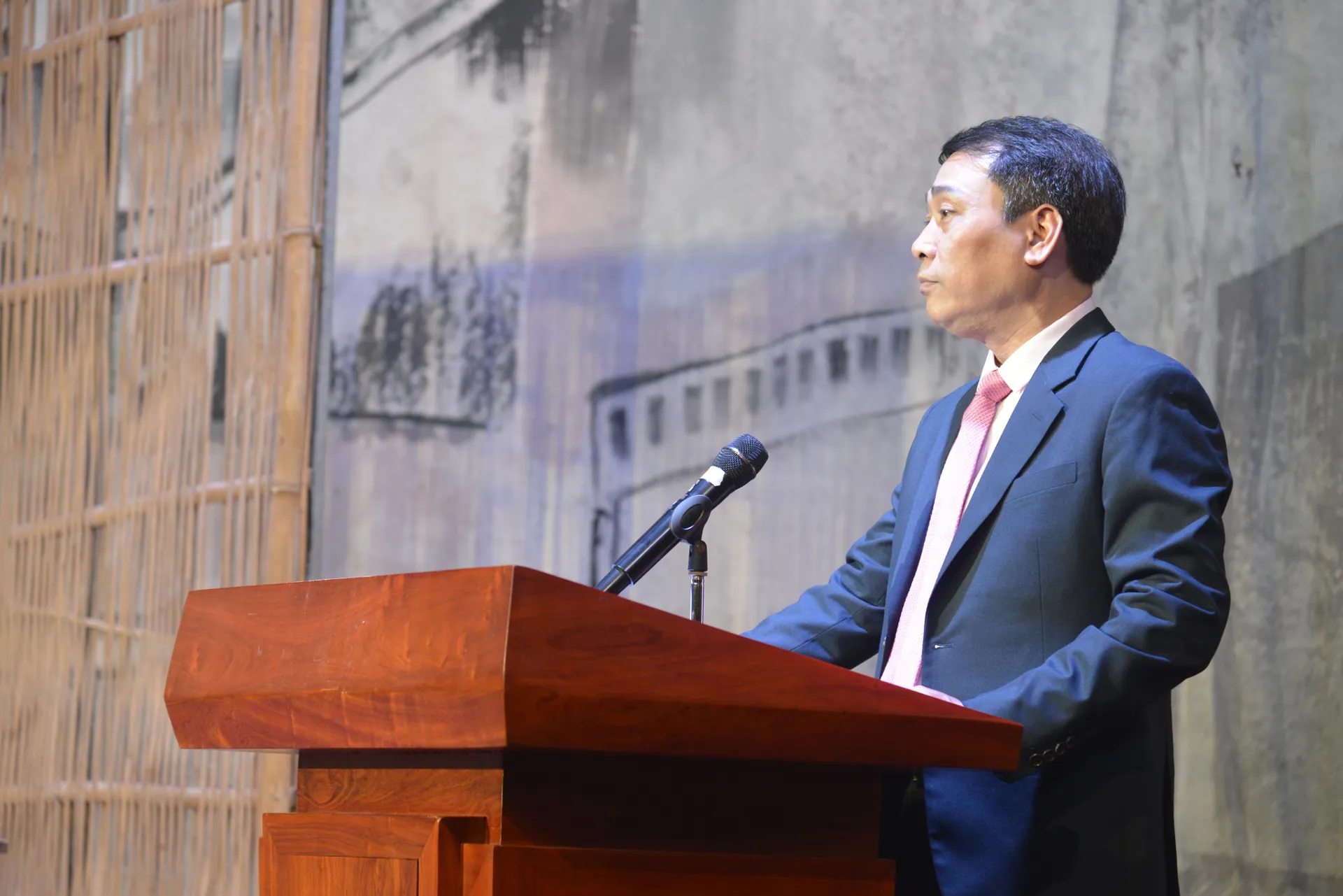 Giám đốc Nhà hát Kịch Việt Nam, NSƯT Kiều Minh Hiếu phát biểu tại chương trình. Ảnh: BTHCM