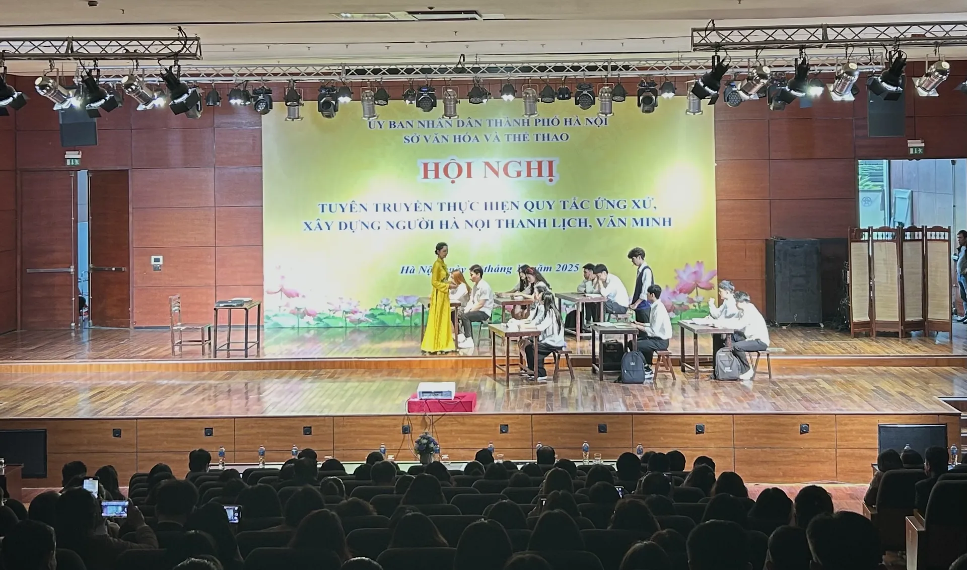 Nhằm đổi mới hình thức tuyên truyền, giúp các nội dung của Quy tắc ứng xử được truyền tải sinh động, gần gũi, dễ nhớ và dễ thực hiện, Sở VH&TT Hà Nội tổ chức dàn dựng và biểu diễn 2 tiểu phẩm tuyên truyền theo hình thức sân khấu hóa. Đó là tiểu phẩm “Tình huống khó xử”, “Vì ngày mai” do các nghệ sĩ Nhà hát Kịch Hà Nội tham gia biểu diễn vừa gần gũi, vừa giàu ý nghĩa, góp phần lan tỏa tích cực tinh thần thực hiện Quy tắc ứng xử trong công sở, nơi công cộng và học đường.