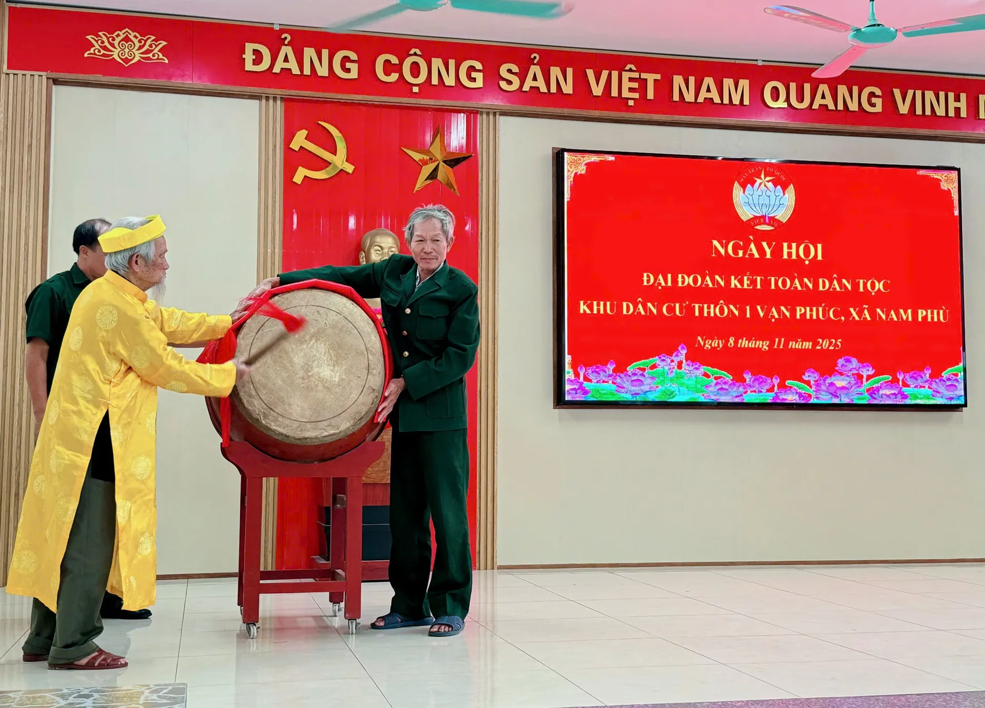Ngay từ đầu giờ chiều, khuôn viên Nhà văn hóa thôn 1 Vạn Phúc đã rực rỡ sắc màu cờ hoa, rộn ràng tiếng nhạc. Các tiết mục văn nghệ do đội văn nghệ và Nhân dân trong thôn biểu diễn đã tái hiện hình ảnh làng quê Nam Phù yên bình, trù phú, thể hiện niềm tự hào về mảnh đất “địa linh nhân kiệt”. Đặc biệt, nghi thức đánh trống khai hội do người cao tuổi có uy tín trong thôn thực hiện đã khơi dậy niềm hứng khởi, đoàn kết, hướng về tương lai.