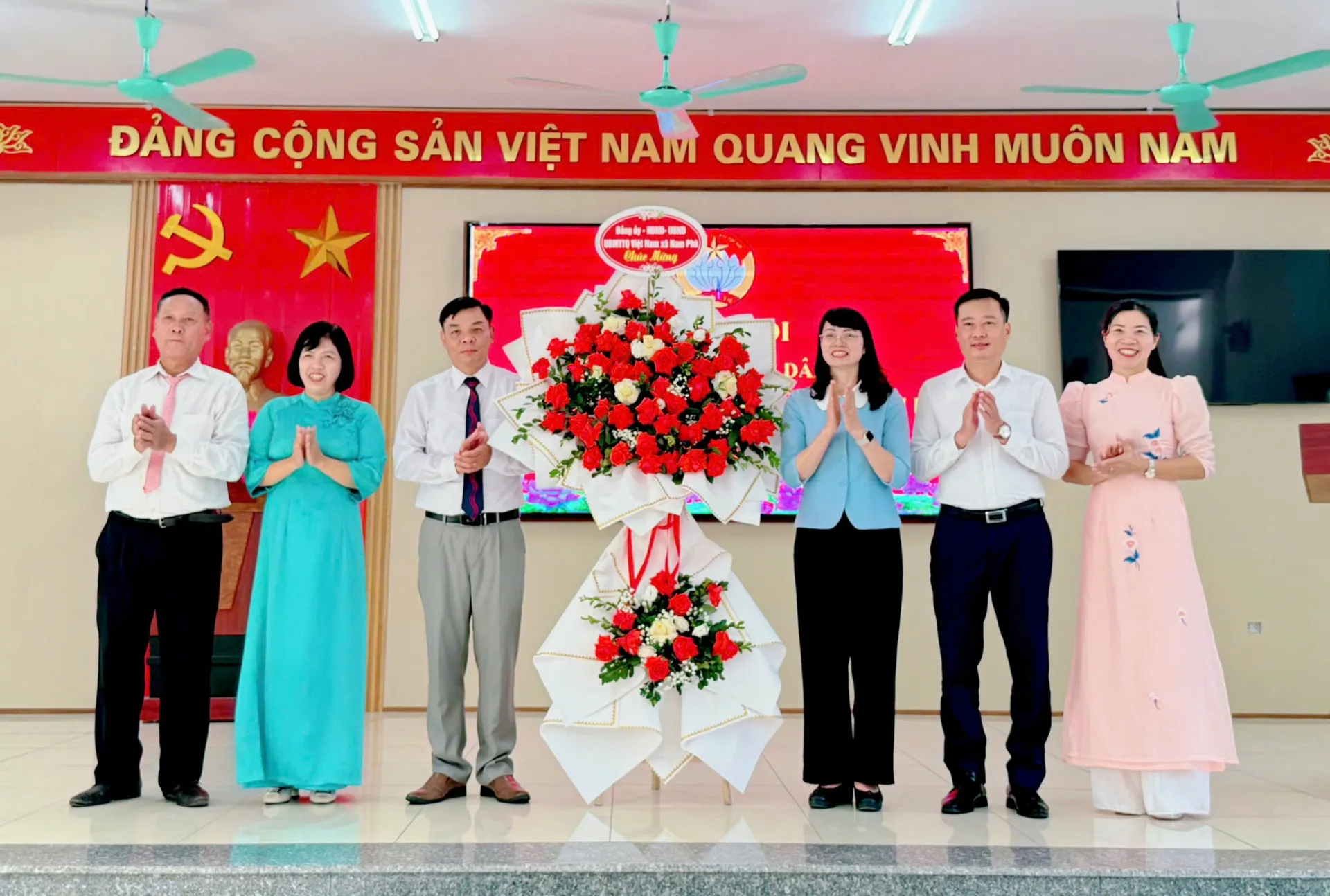Lãnh đạo xã Nam Phù tặng hoa chúc mừng ngày hội.
