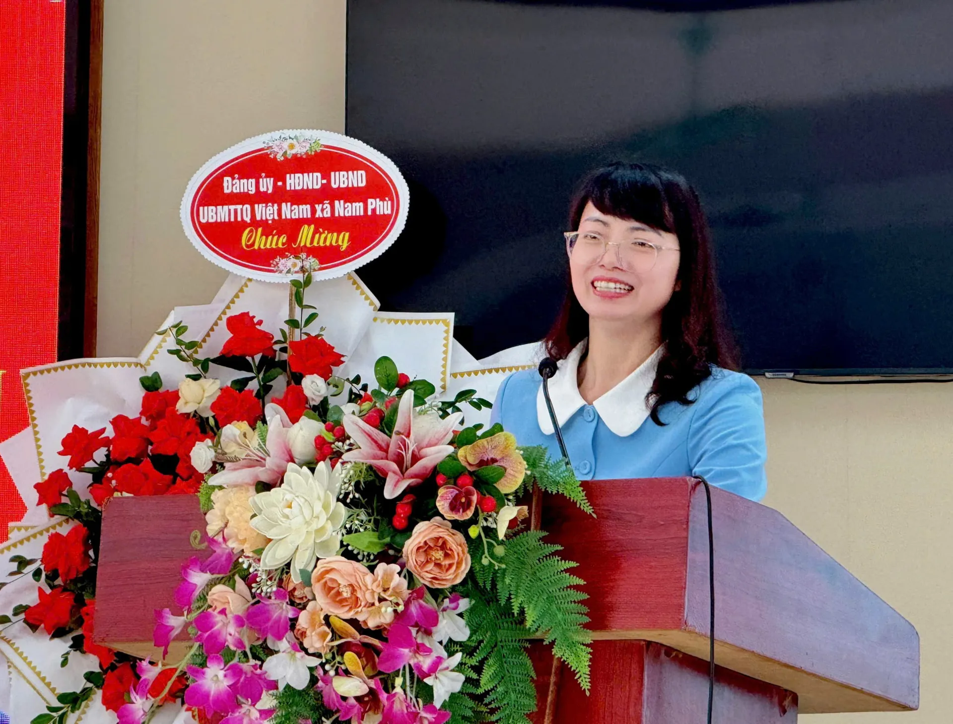 Phó Bí thư Đảng ủy, Chủ tịch UBND xã Nam Phù Nguyễn Thị Thu Huyền phát biểu tại ngày hội.