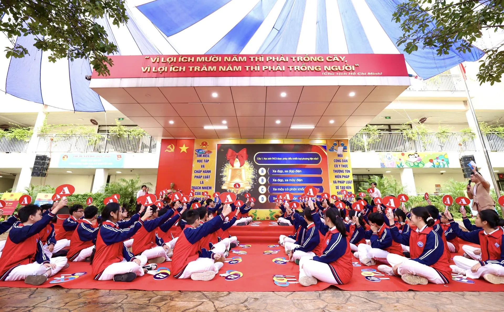 Lễ phát động diễn ra trong bầu không khí sôi động với nhiều chương trình nghệ thuật hấp dẫn và cuộc thi “Rung chuông Vàng - Tìm hiểu kiến thức pháp luật” do thầy và trò Trường THCS Khương Đình sáng tạo tổ chức.